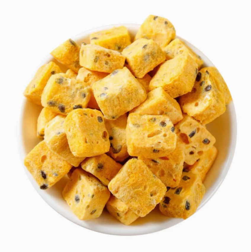 เวียดนาม ผลิตภัณฑ์จากโรงงานโดยตรง ผลไม้แห้งแบบแช่แข็ง ชิ้นส่วนเสาวรส บรรจุภัณฑ์แบบก้อน สำหรับส่งออกขายส่ง รับผลิตฉลากสินค้าตามสั่ง แบรนด์สินค้าของคุณเอง