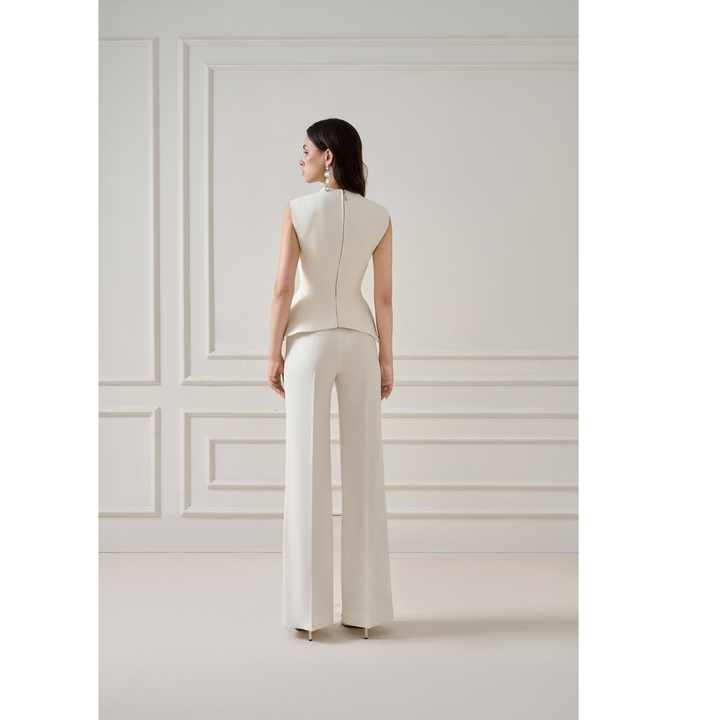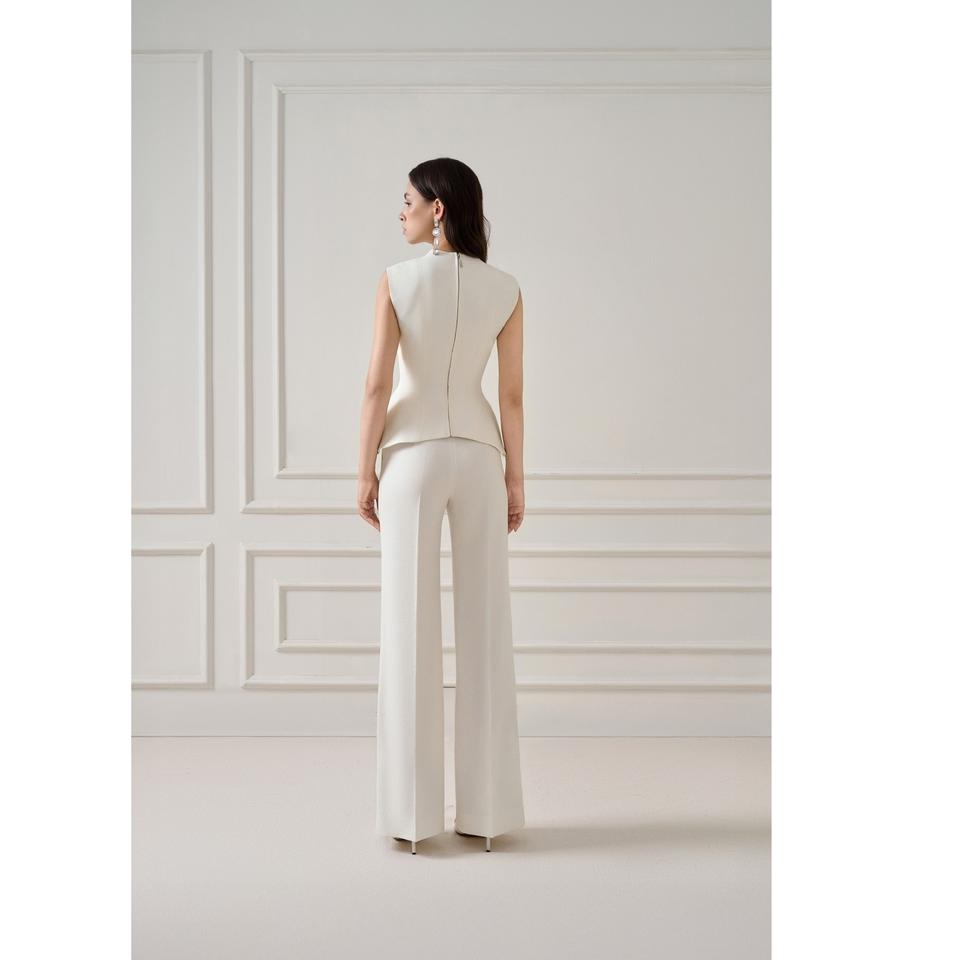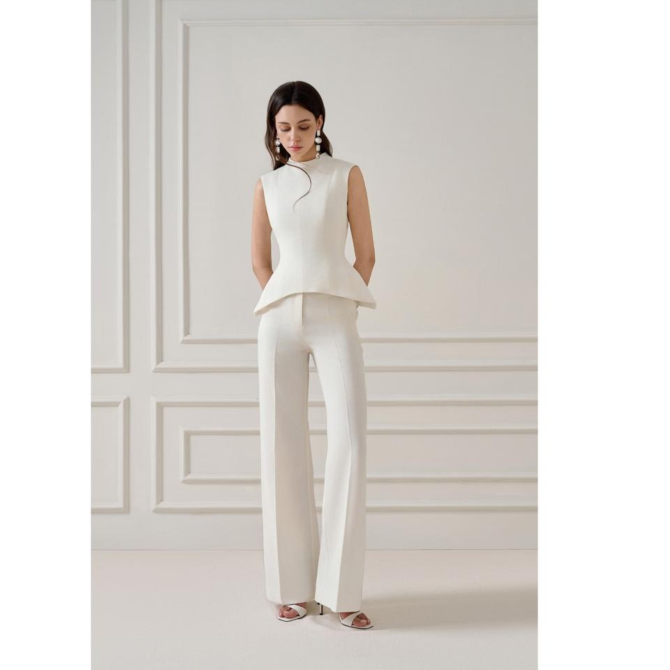 Vietnam Elegant ODM Women's Blouses Shirts LILA SAND JACQUARD PEPLUM Sleeveless Shirts Women's Blouses & Shirts WhiteAnt Brand