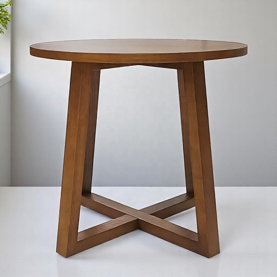 โต๊ะข้างทำจากไม้ยางพาราทรงกลมหรูหราโต๊ะปลายทันสมัยตกแต่งด้วยธรรมชาติสำหรับห้องนั่งเล่นที่ยั่งยืน