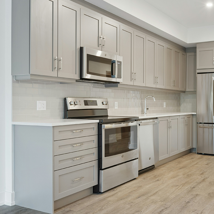 เคาน์เตอร์ครัวหินควอตซ์เทียมสำหรับวิลล่าพื้นผิวสีพื้นทนต่อการกระแทกดีไซน์ตามสั่งผลิตจากโรงงานในเวียดนาม