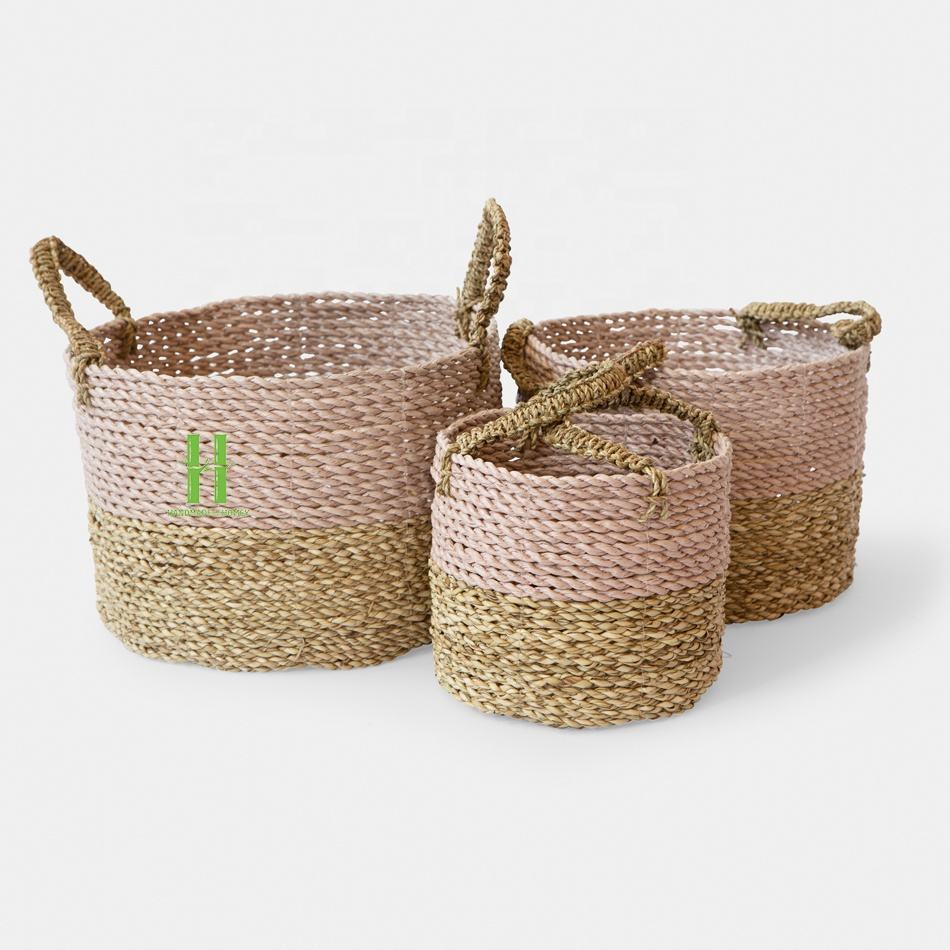 ตะกร้าใส่ของจากหญ้าทะเลสองโทนสีทำด้วยมือกล่องเก็บของออกแบบให้บ้านได้อย่างยืดหยุ่นจากโรงงานในเวียดนาม