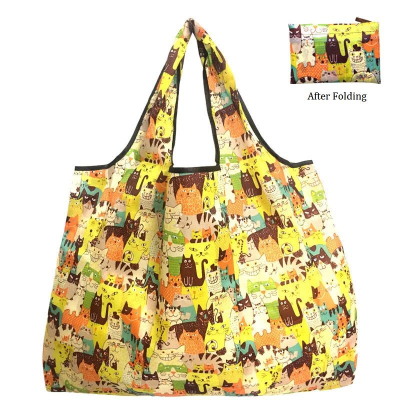 กระเป๋าช้อปปิ้งแบบพับได้เป็นมิตรต่อสิ่งแวดล้อมผลิตจากโรงงานเวียดนามผ้าโพลีเอสเตอร์ลายการ์ตูนผ้าโพลีเอสเตอร์แบบ ripstop สีที่กำหนดเองได้