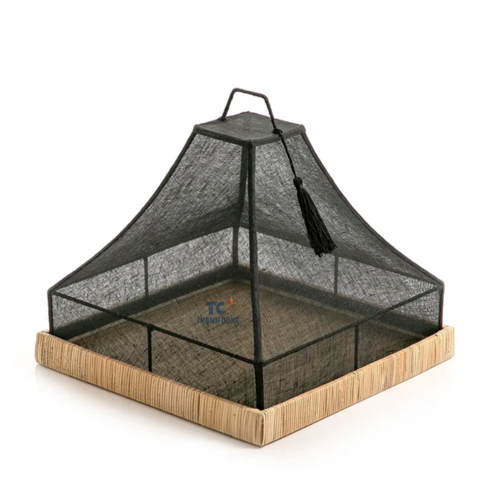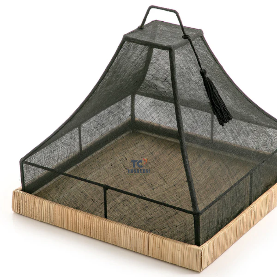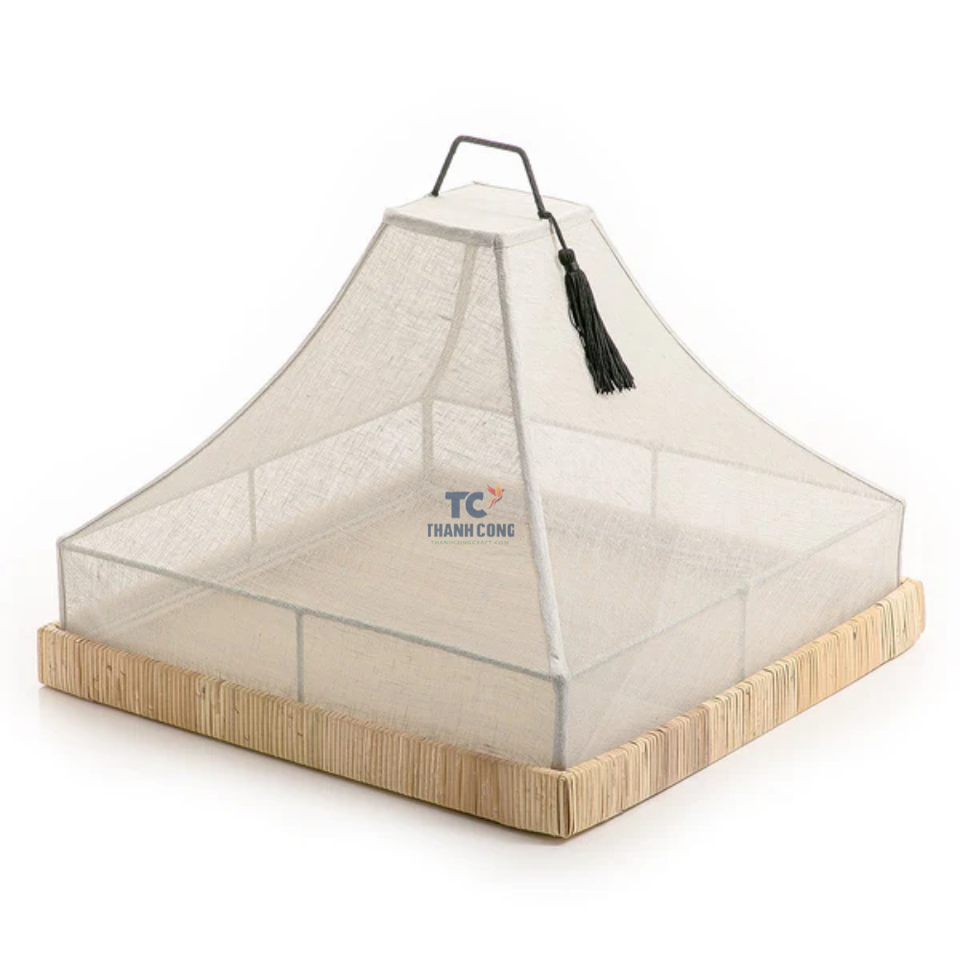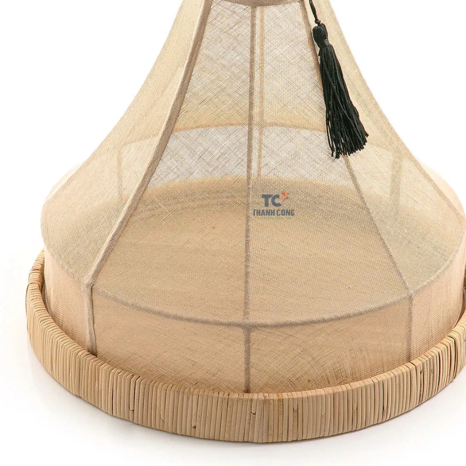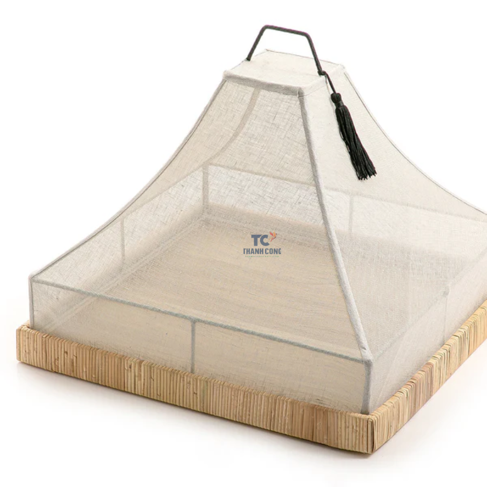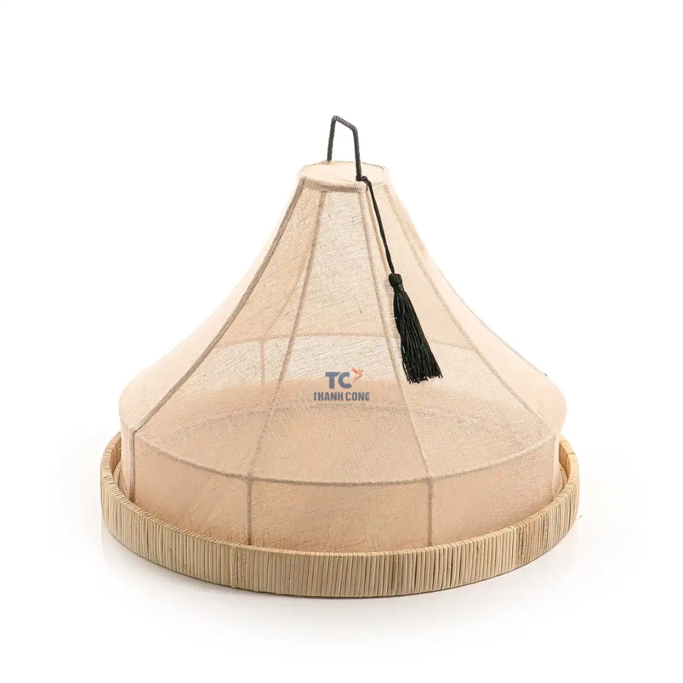 ที่คลุมอาหารทำจากผ้าลินินทรงกรวยพร้อมถาดหวายถาดใส่อาหารรูปสี่เหลี่ยมงานหัตถกรรมสำหรับตกแต่ง
