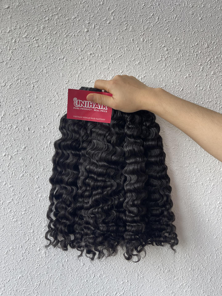 วิกผมหยิกแบบหลวมสีดำธรรมชาติผมคนเวียดนามแบบ100%
