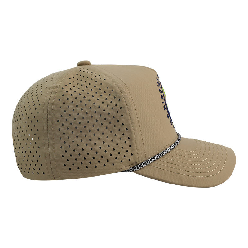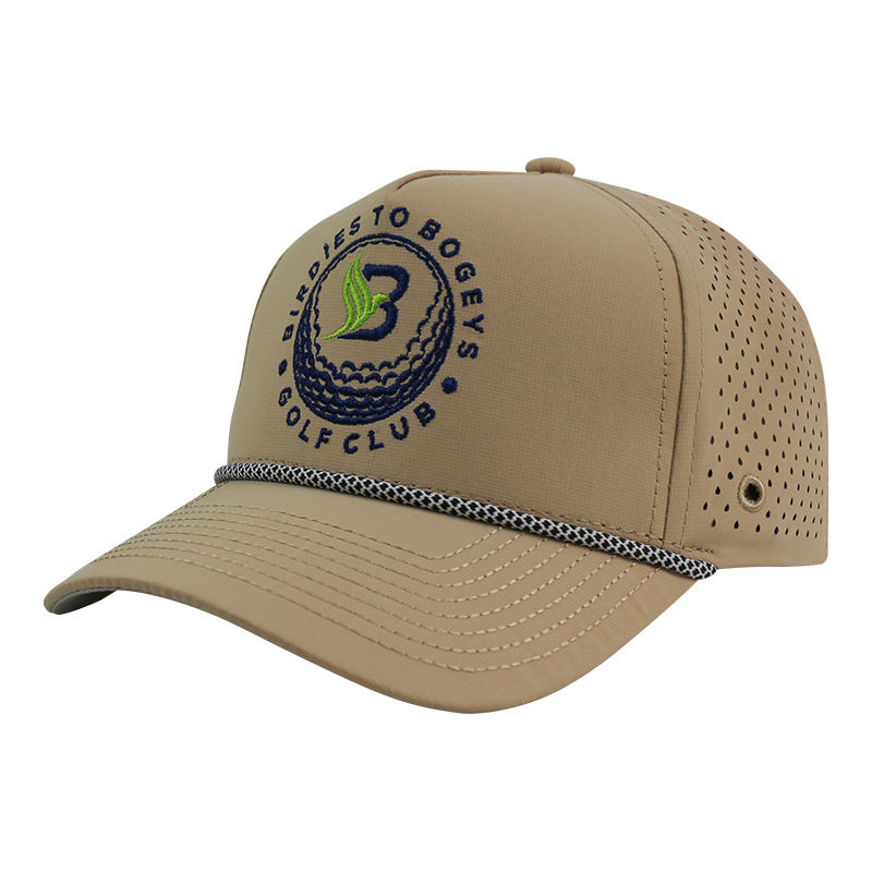 Vietnam Factory Low Tax Competitive Price Waterproof Hat Custom Laser Cut Hole Rope Tee Holder Performance Baseball Cap Golf Hat