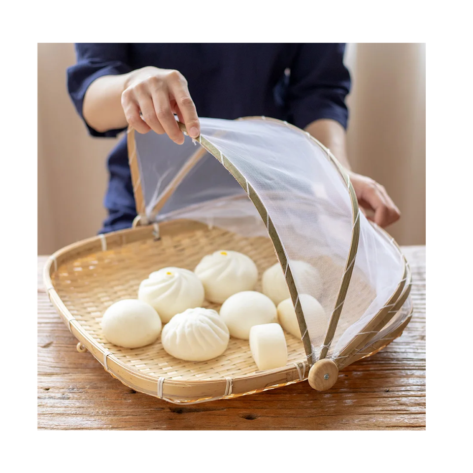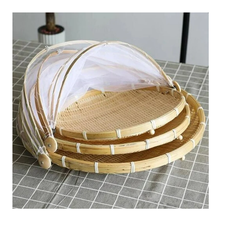 ถาดไม้ไผ่ธรรมชาติพร้อมตาข่ายสำหรับตกแต่งอาหารจากโรงงานเวียดนาม