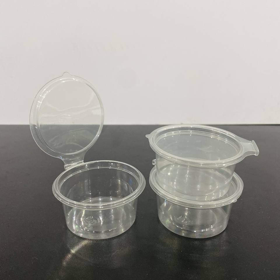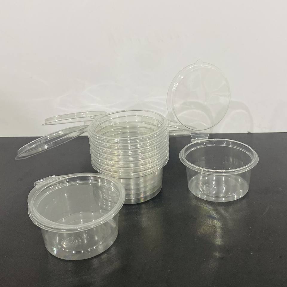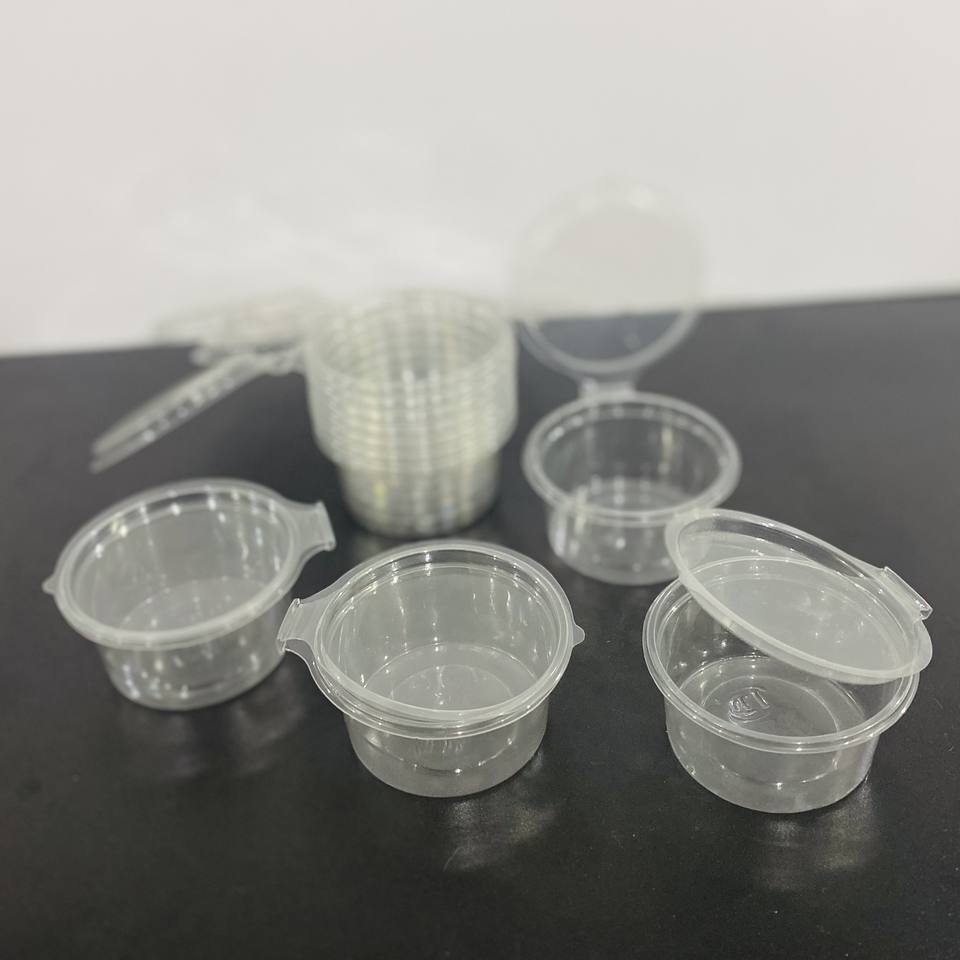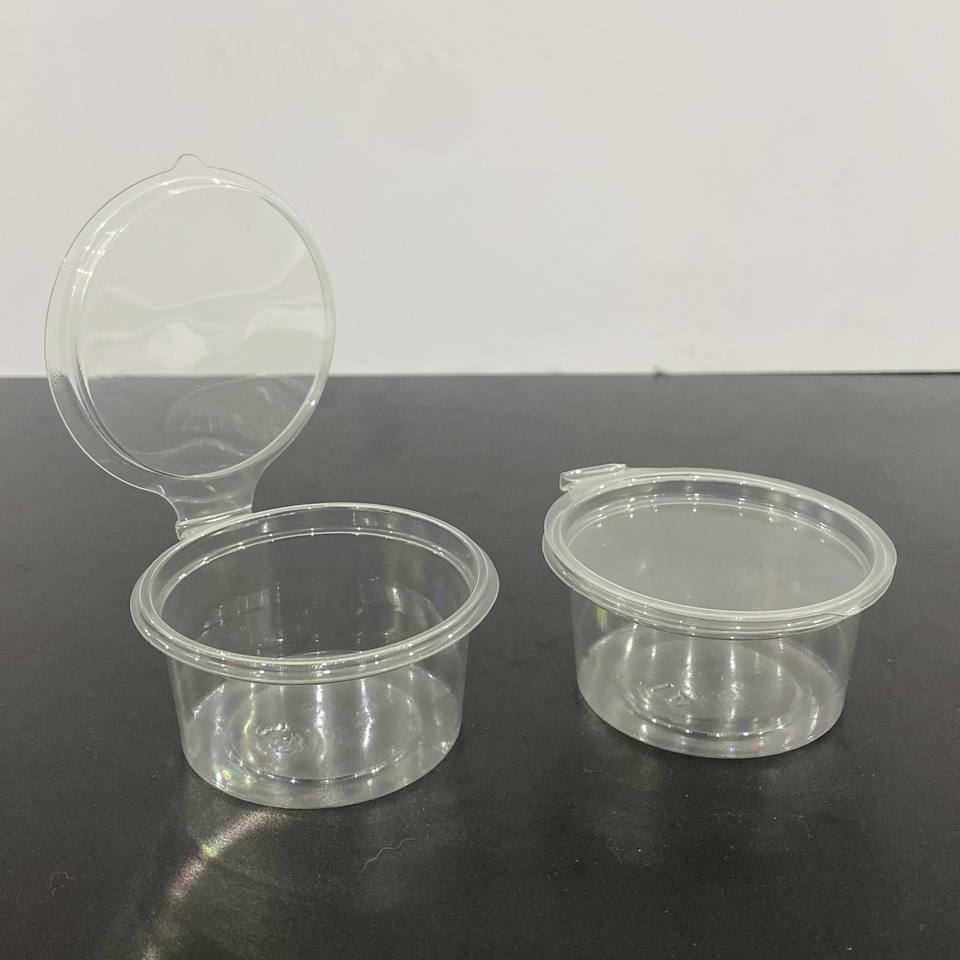 ถ้วยซอสพลาสติกสำหรับสัตว์เลี้ยงขนาด2ออนซ์60มล. ภาชนะใส่ซอสใช้แล้วทิ้งพร้อมฝาบานพับโลโก้ออกแบบได้ตามต้องการ