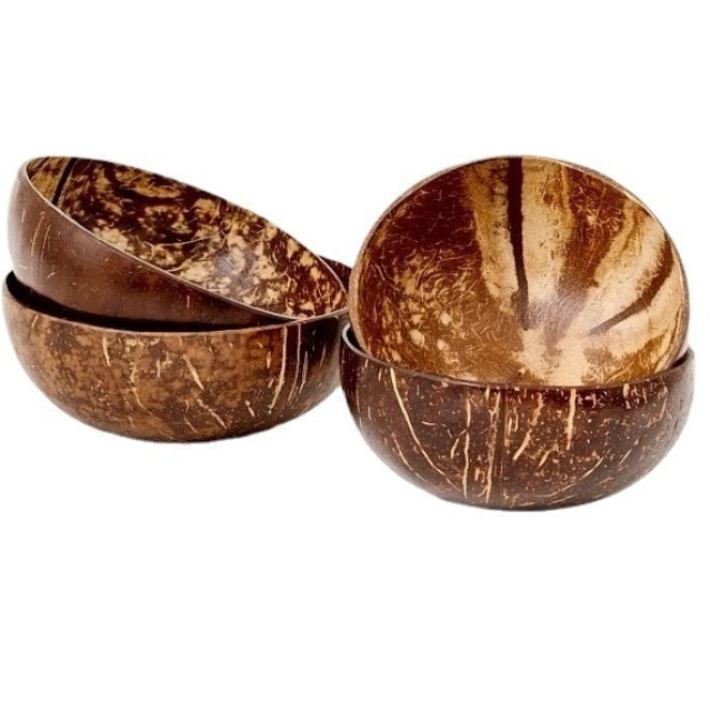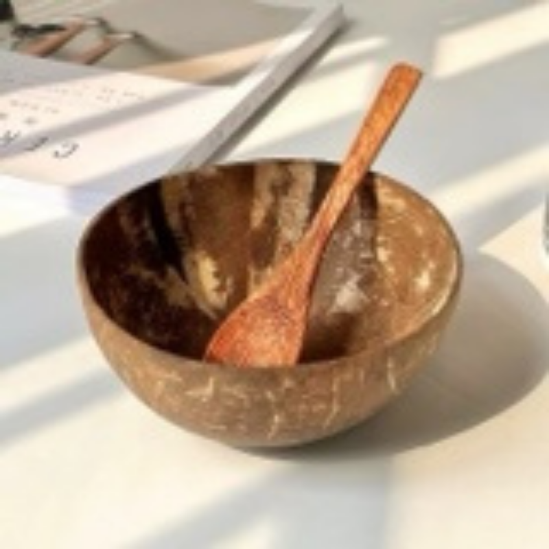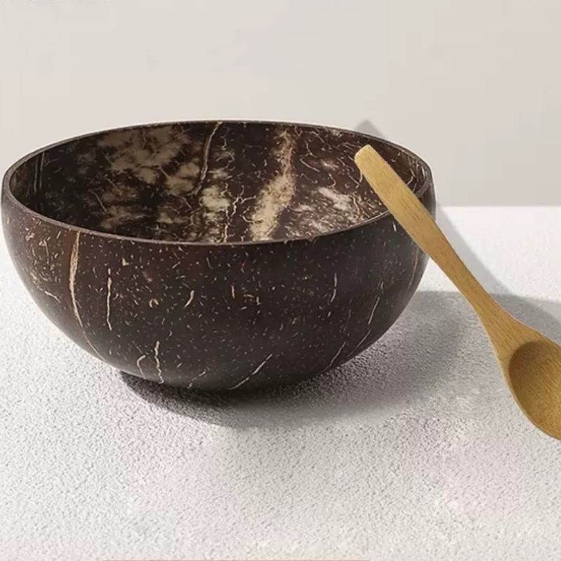 ชุดรับประทานอาหารชามมะพร้าวทำมือและช้อนงานปาร์ตี้ชามปั่นสลัดดีไซน์แบบชนบทจากโรงงานเวียดนาม