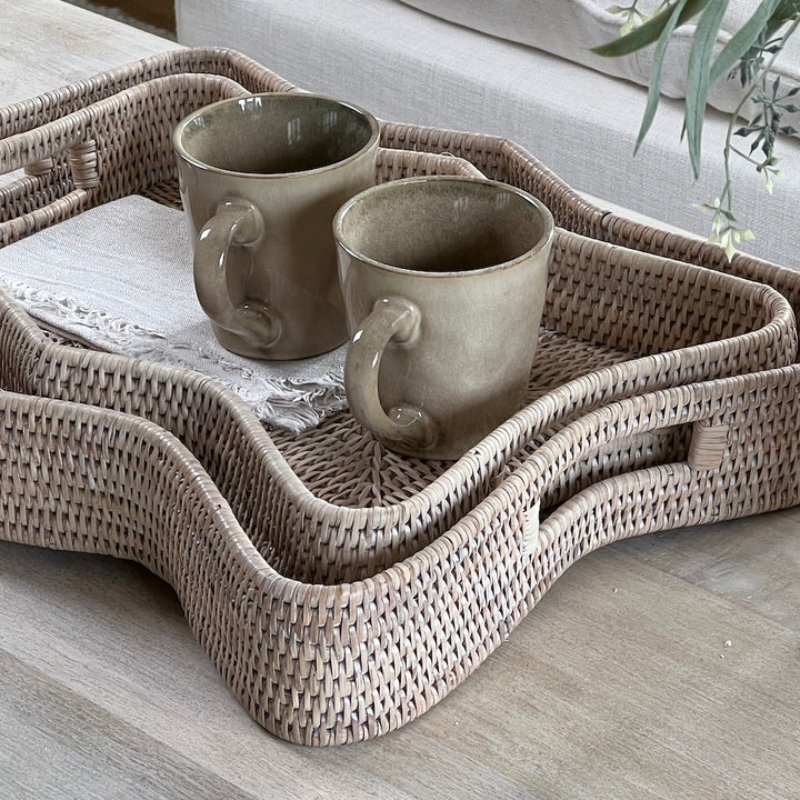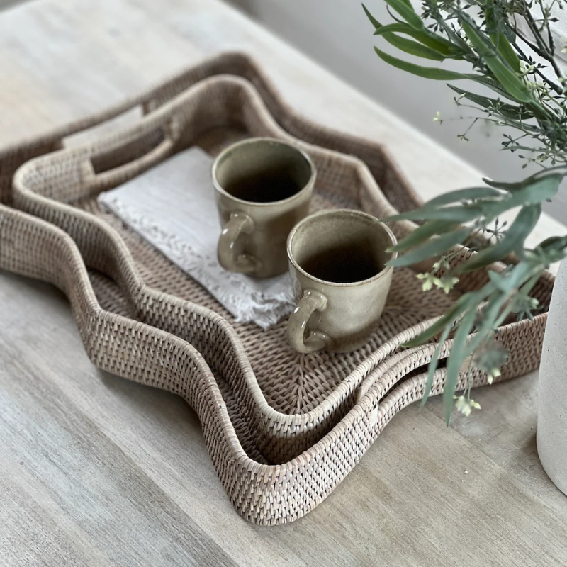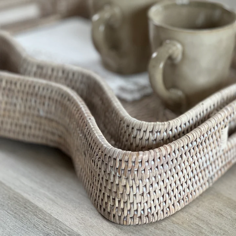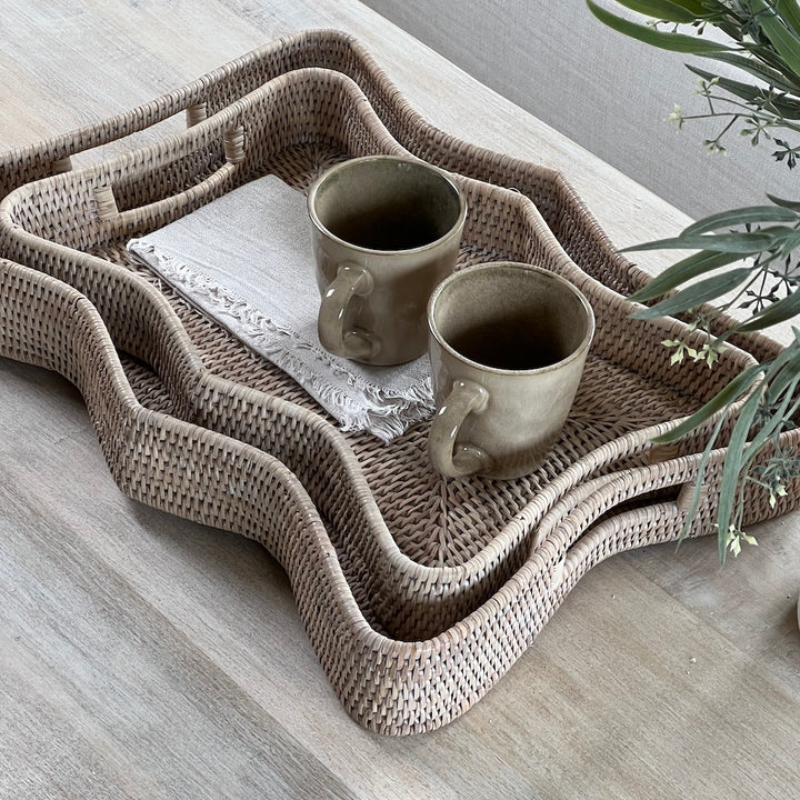 ถาดหวายสานด้วยมือแบบคลาสสิกอุปกรณ์บนโต๊ะอาหารเครื่องดื่มแบบยั่งยืนเครื่องครัวสำหรับตกแต่งบ้าน