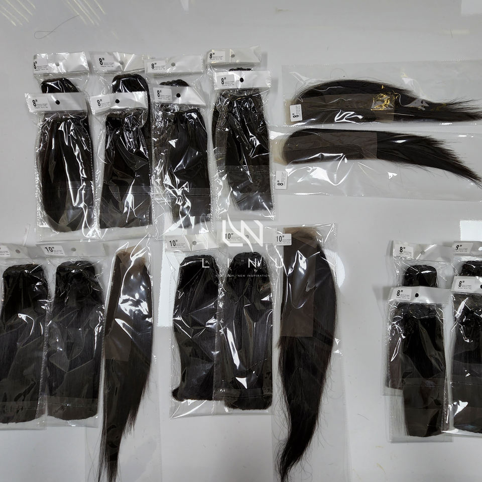 มัดผมตรงกระดูกสองชั้นสีธรรมชาติและส่วนหน้าผากผมตรงจากเวียดนาม