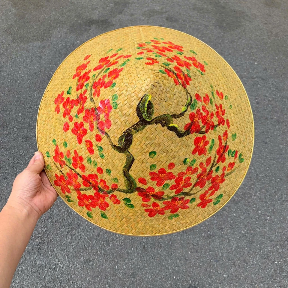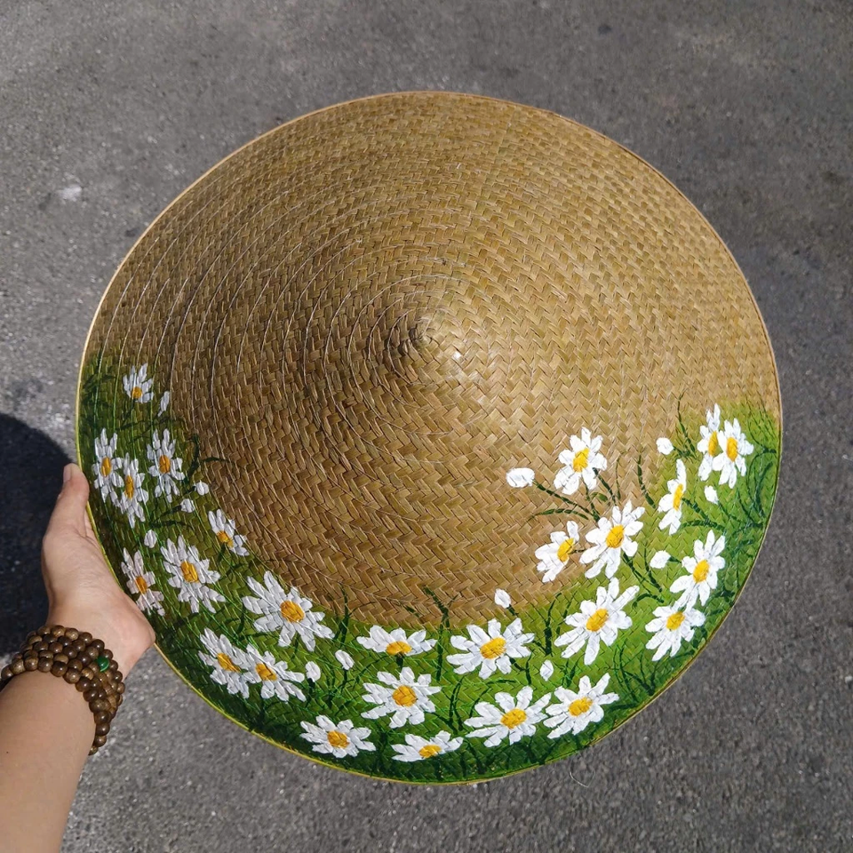 Vietnam Hand-Painted Bang Grass Conical Hat - Decorative Floral, Landscape & Traditional Art, Handmade from Lepironia Articulata