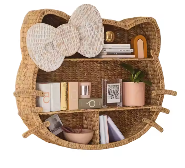 ชั้นหวายติดผนังลายดอกไม้สำหรับเก็บของในบ้านและห้องนอนเด็กที่ทำด้วยมือสไตล์เวียดนาม