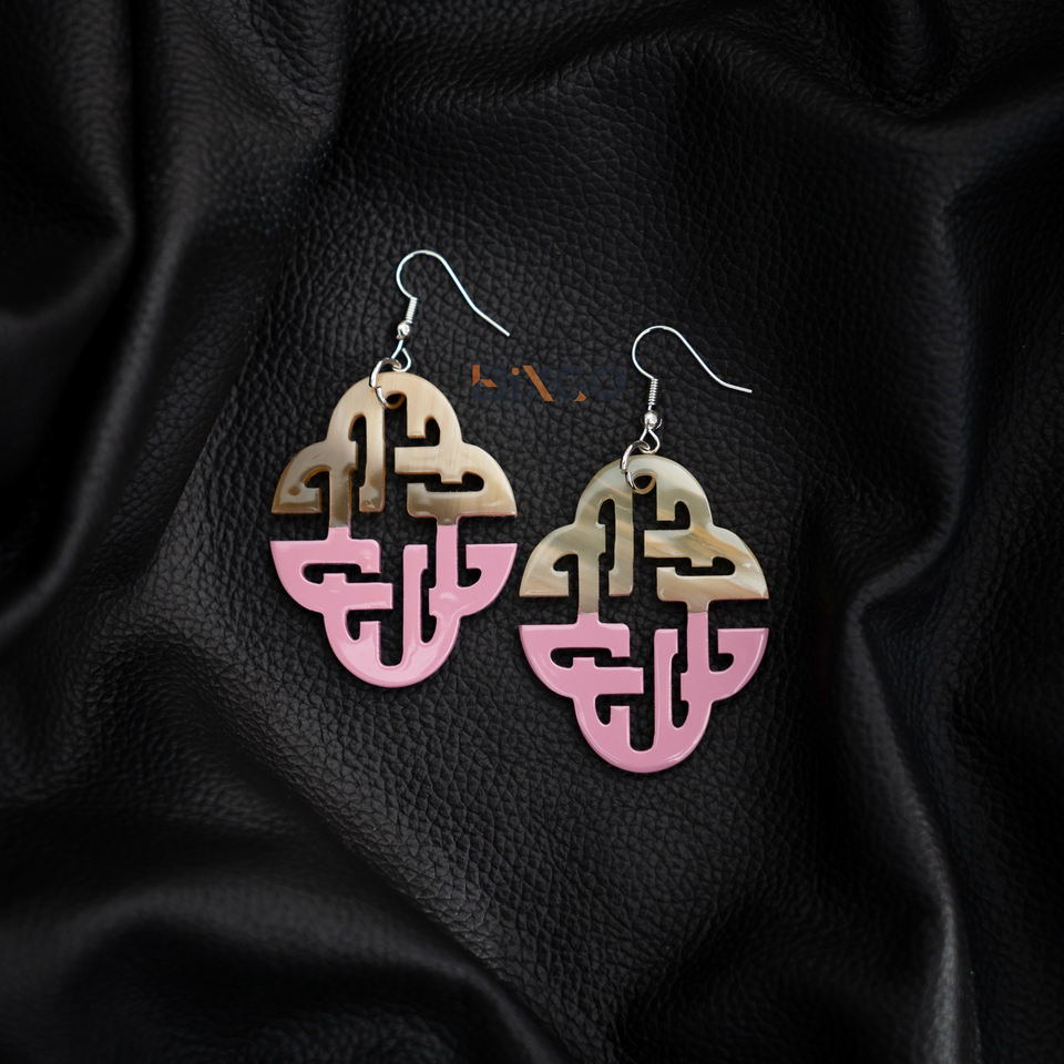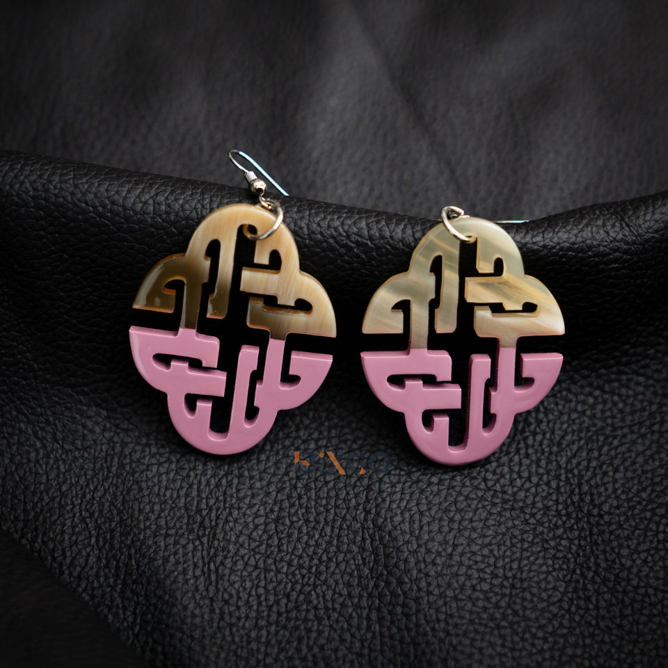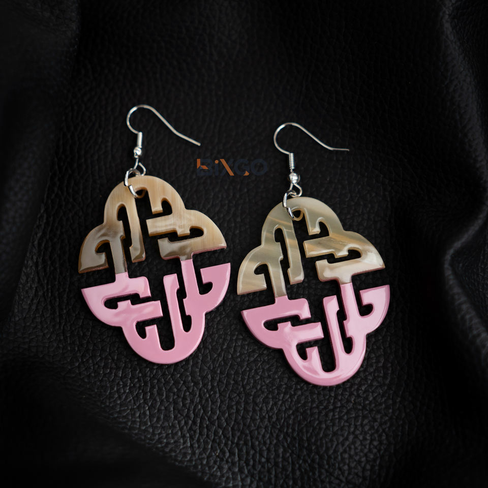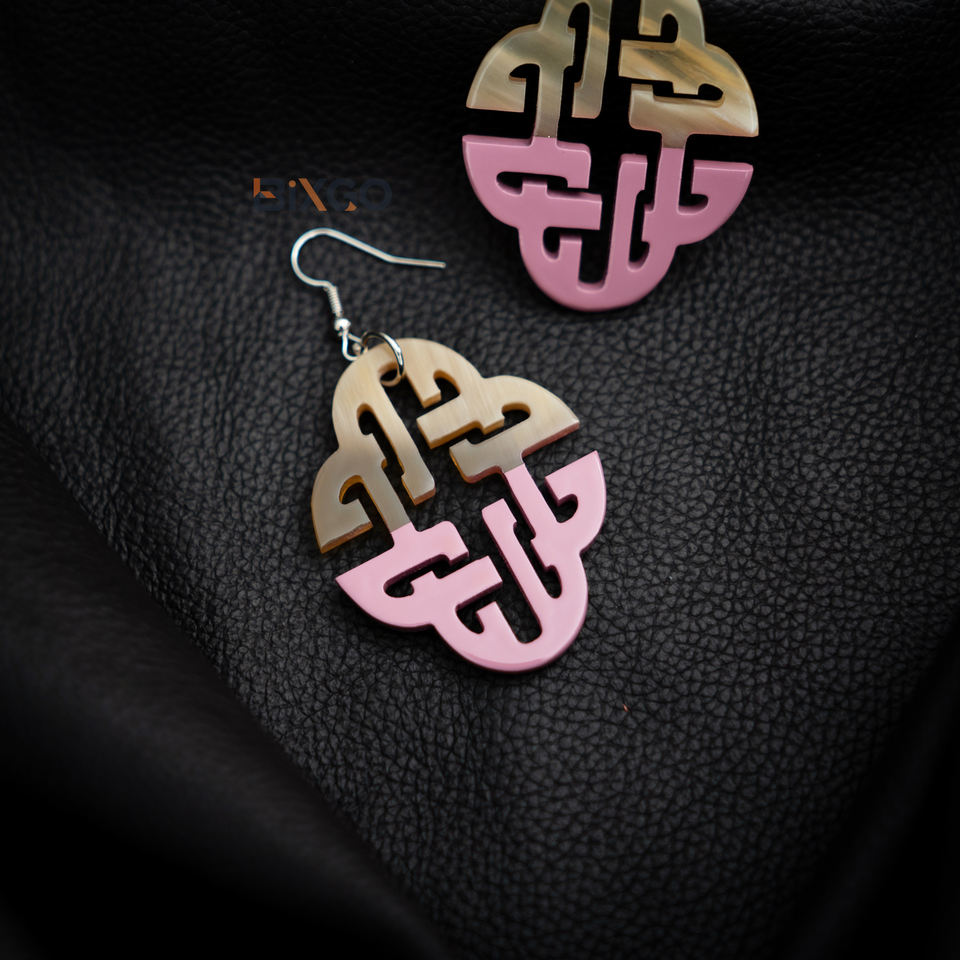ต่างหูเขาควายที่ทำด้วยมือจากเวียดนามพร้อมแล็กเกอร์สีชมพูครึ่งเครื่องประดับแฟชั่นขายส่งตามสั่ง