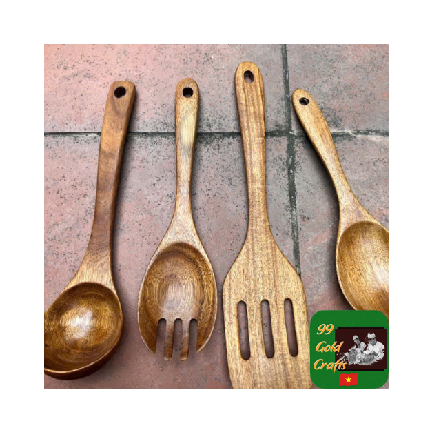 ชุดช้อนไม้ทำอาหารจากไม้ธรรมชาติทำด้วยมือของเวียดนามหลายขนาดช้อนไม้ที่ทนทานสำหรับขายส่งและสั่งซื้อจำนวนมาก