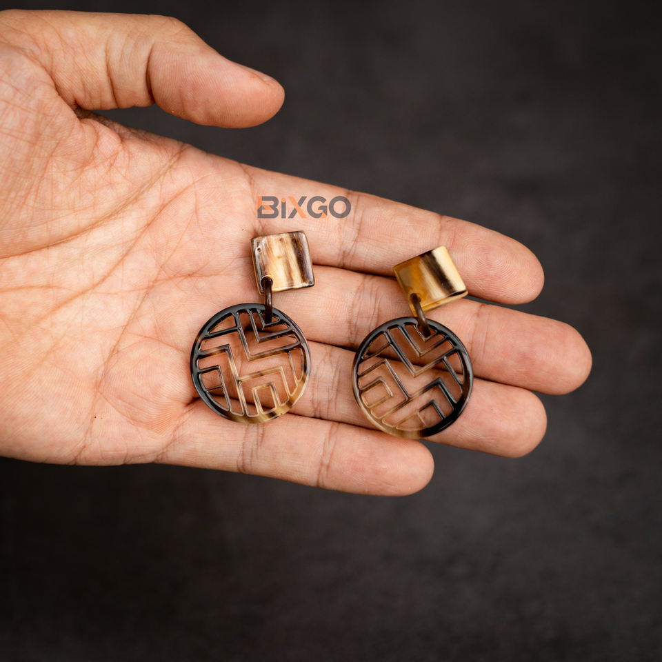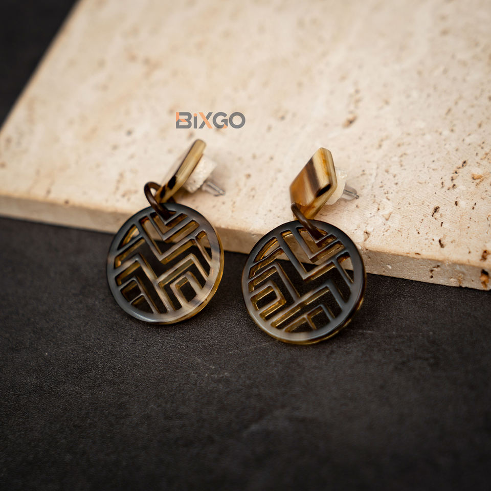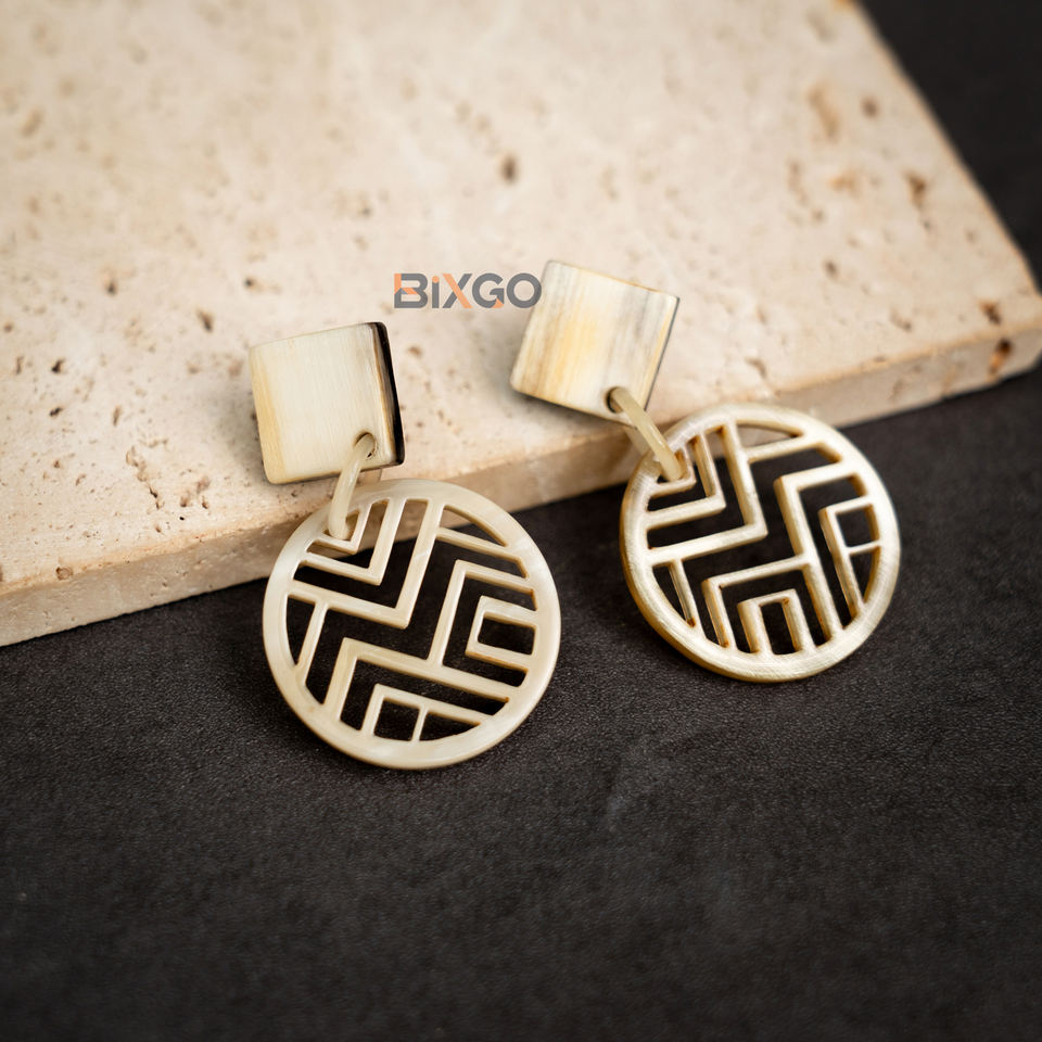 ต่างหูทรงกลมงานหัตถกรรมจากเวียดนามที่มีลวดลายแกะสลักแลคเกอร์สีขาวดีไซน์ใหม่เครื่องประดับแฟชั่นขายส่งตามสั่ง