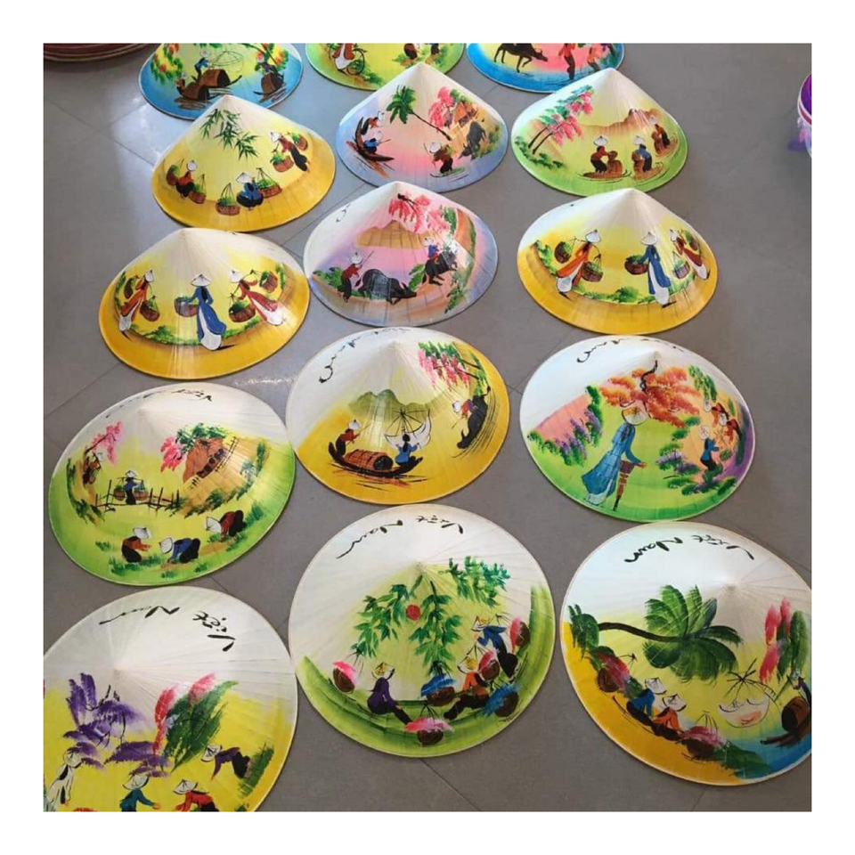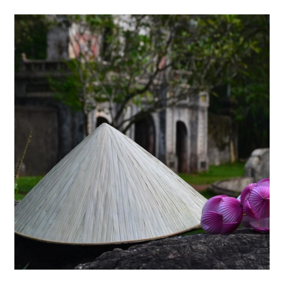 หมวกทรงกรวยใบปาล์มทำด้วยมือจากไม้ไผ่จากเวียดนาม-น้ำหนักเบาระบายอากาศได้ดีเหมาะสำหรับการท่องเที่ยวกลางแจ้งนิทรรศการทางวัฒนธรรม
