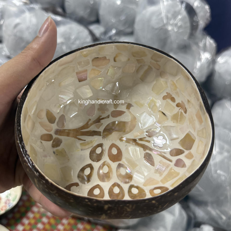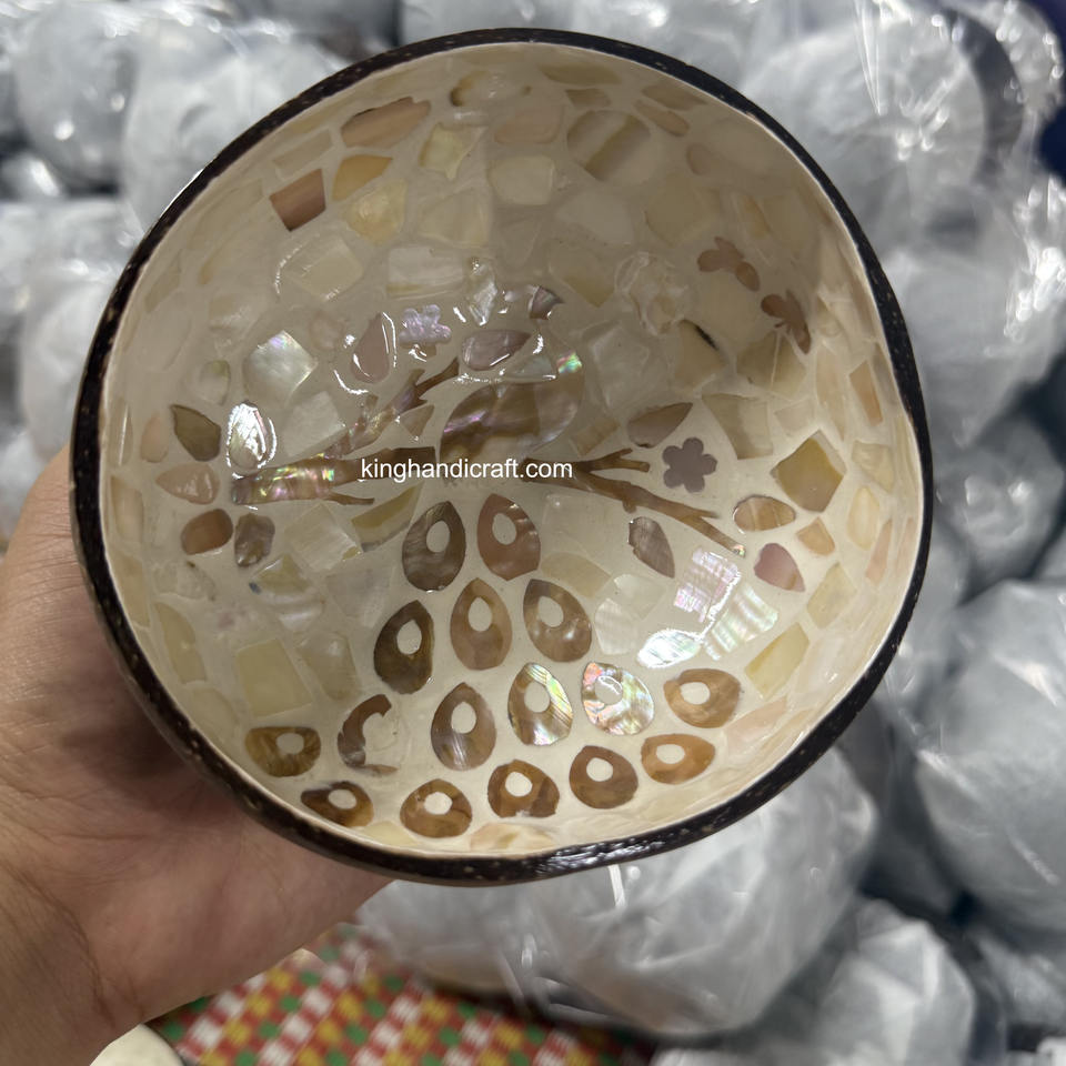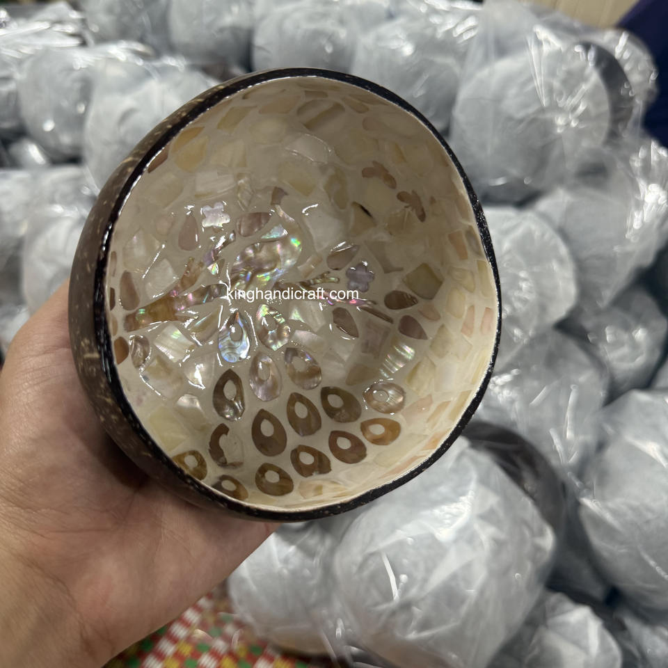 ชามมะพร้าวเคลือบงานแฮนด์เมดแบบเวียดนามชามสลัดแบบใช้ซ้ำได้ออร์แกนิกสำหรับห้องครัวรักษ์โลก