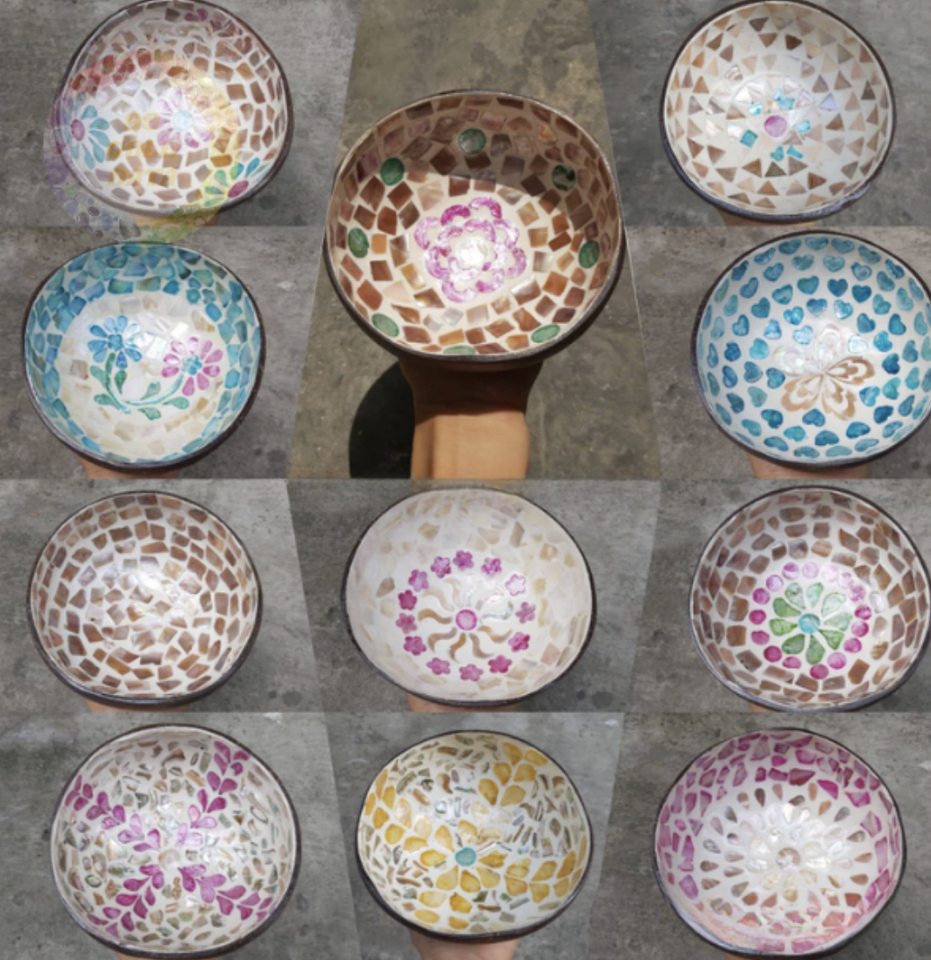 ชามกะลามะพร้าวงานแฮนด์เมดแบบเวียดนามจานเคลือบเงาสำหรับงานหัตถกรรมรักษ์โลกสำหรับเสิร์ฟอาหารเก็บของว่างและตกแต่งบ้าน