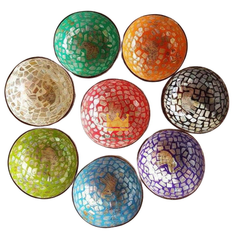 ชามกะลามะพร้าวทำมือจากเวียดนาม บุด้วยแล็กเกอร์มุกประกายรุ้ง เป็นมิตรกับสิ่งแวดล้อม น้ำหนักเบา ทนทาน ใช้ในบ้าน ธรรมชาติ
