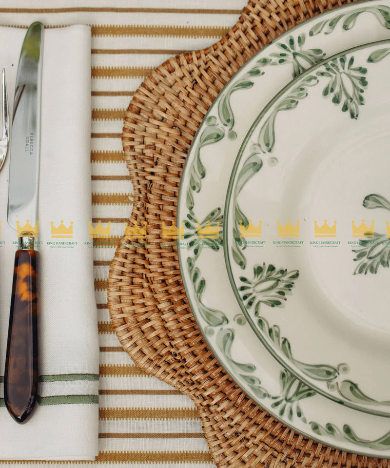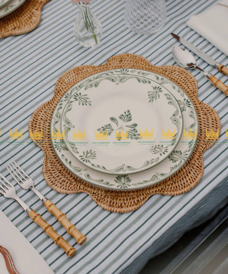 เสื่อรองจานหวายสานลายดอกไม้ทำด้วยมือจากเวียดนามเหมาะสำหรับเพิ่มพื้นที่รับประทานอาหารในห้องครัวและแผ่นรอง