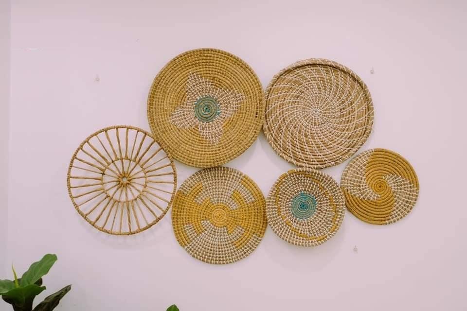 แผ่นแขวนผนังลายหญ้าทะเลธรรมชาติทำด้วยมือสไตล์เวียดนามศิลปะการทอเหมาะสำหรับตกแต่งบ้านรีสอร์ทและตกแต่งภายใน