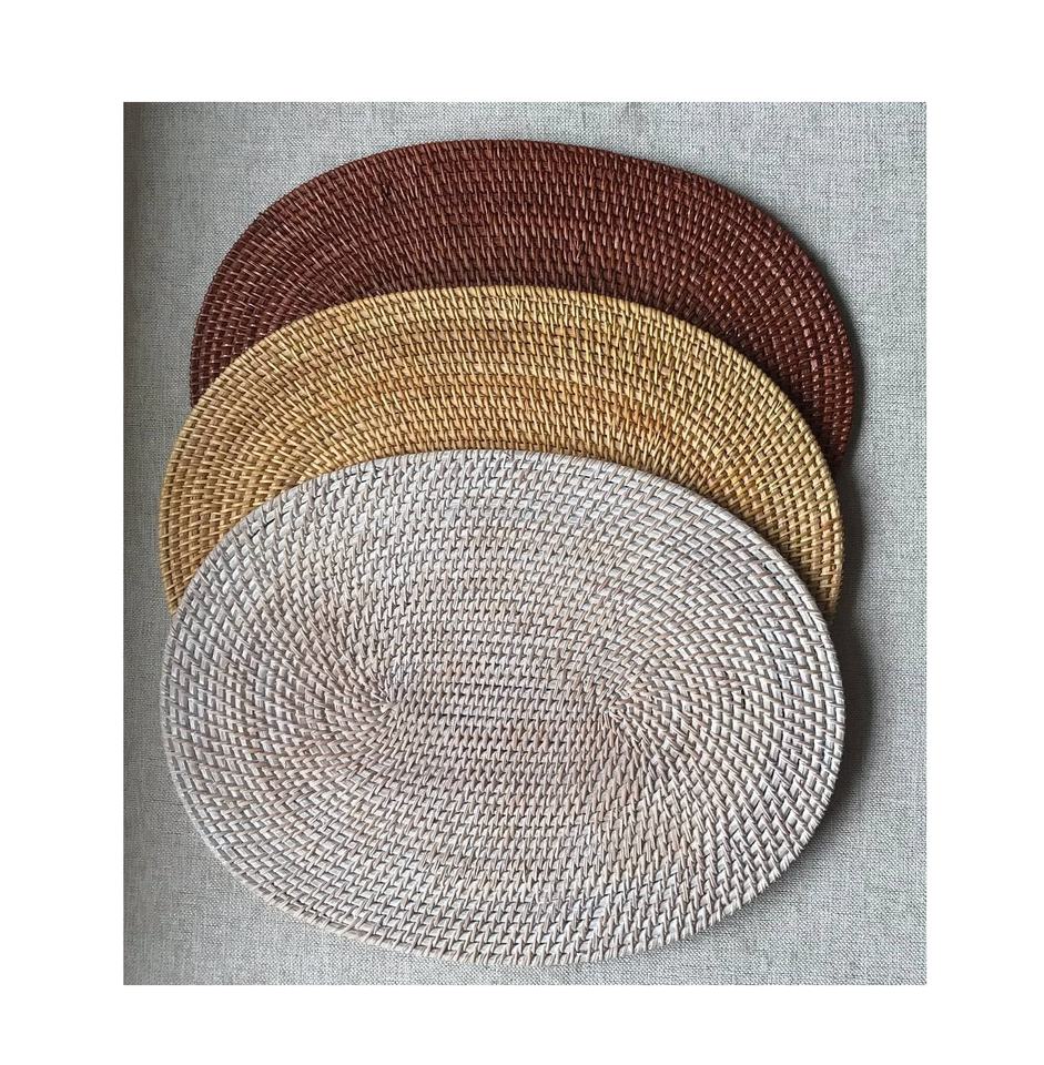 จานหวายทำด้วยมือจากเวียดนามที่มีขนาดและโลโก้ที่ปรับแต่งได้ตามธรรมชาติสำหรับการจัดเลี้ยงงานปาร์ตี้และการใช้ในโรงแรม