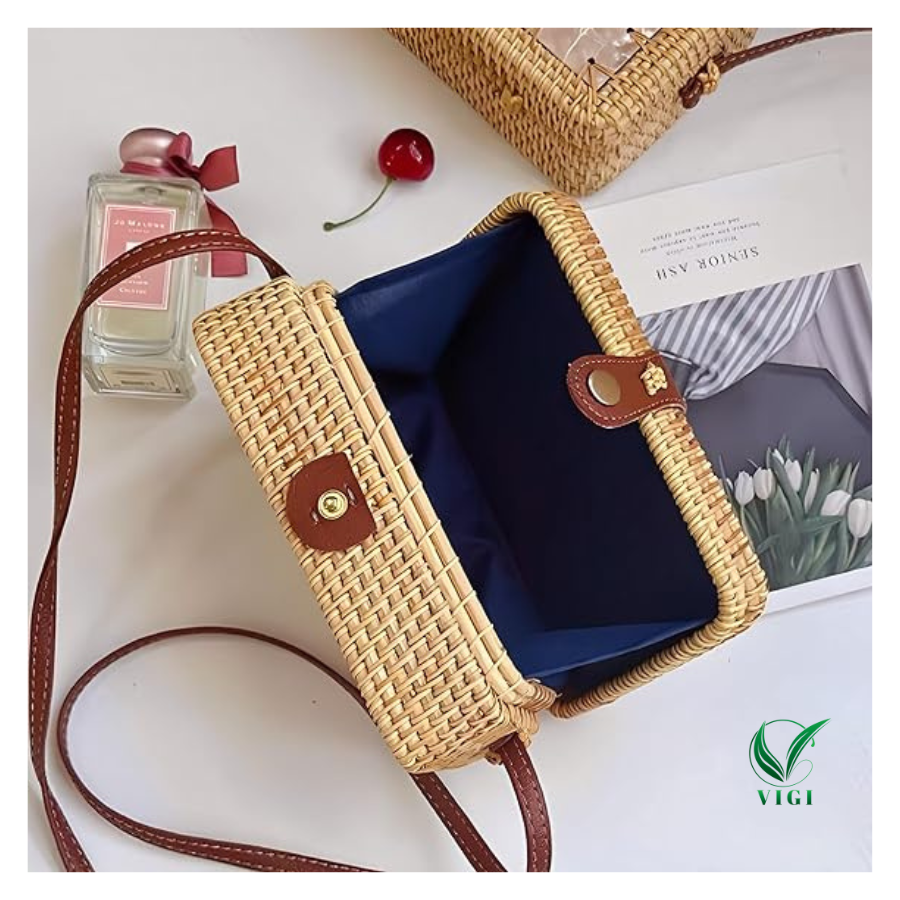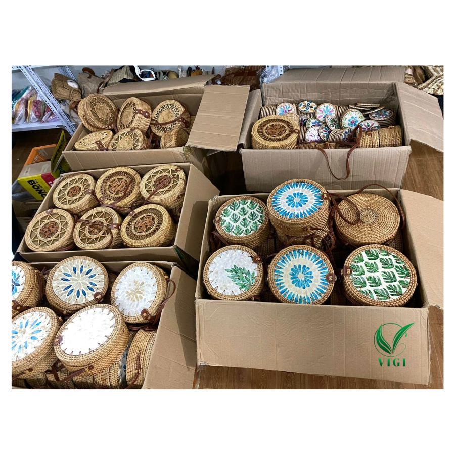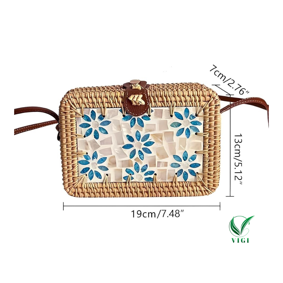 กระเป๋าสะพายหวายทำด้วยมือจากเวียดนามพร้อมโมเสคเปลือกหอยธรรมชาติสำหรับใส่กลางวันและสไตล์ไลฟ์สไตล์แนวชายฝั่ง