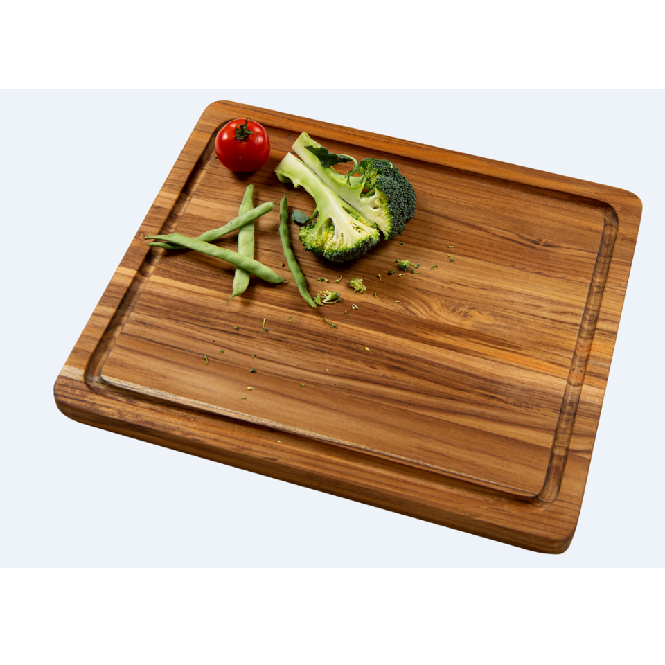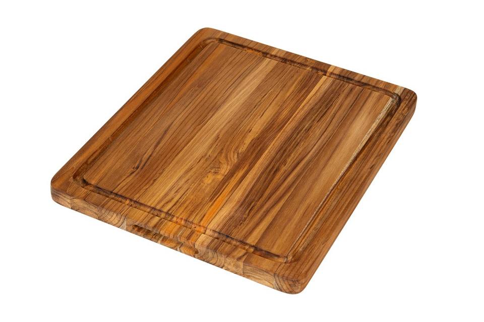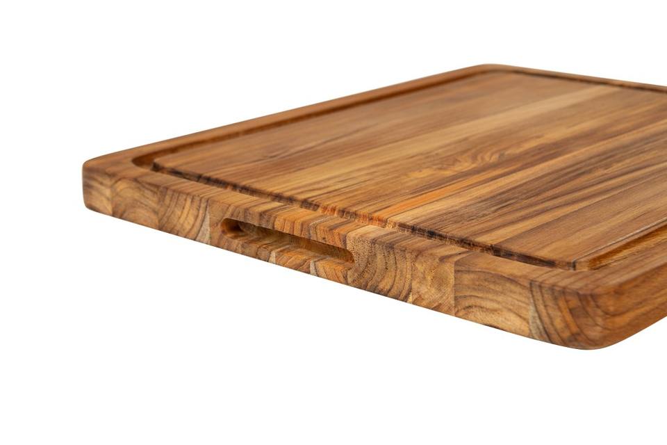 เขียงไม้สักทรงสี่เหลี่ยมคุณภาพสูงจากเวียดนาม เป็นมิตรกับสิ่งแวดล้อม พร้อมร่องสำหรับน้ำผลไม้ ด้ามจับถนัดมือ ดีไซน์หรูหราทันสมัย สำหรับอุปกรณ์ครัว
