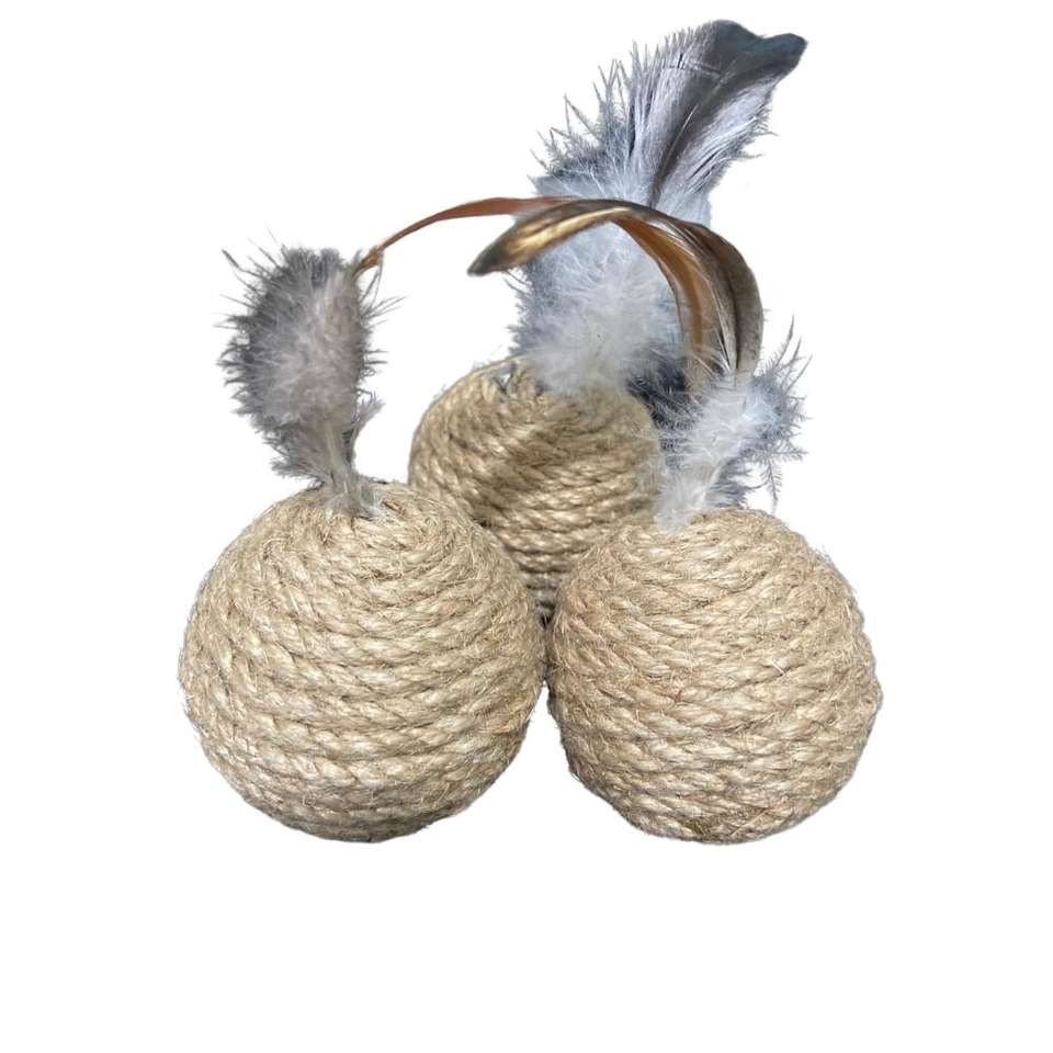 ของเล่นสัตว์เลี้ยงแบบโต้ตอบที่เป็นมิตรต่อสิ่งแวดล้อม,ลูกยางรีไซเคิลสำหรับแมวห่อด้วยเส้นด้ายปอกระเจาผลิตจากเวียดนาม