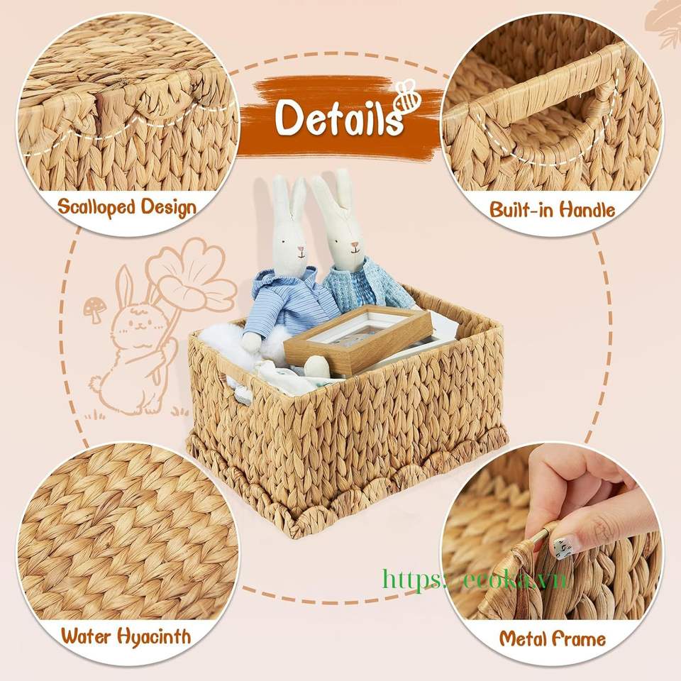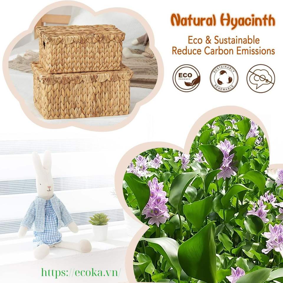ตะกร้าเก็บของหวายรักษ์โลกพร้อมฝาปิด ดีไซน์อเนกประสงค์สำหรับตกแต่งบ้าน ห้องเด็ก และห้องเด็กเล็ก ขายดีในเวียดนาม