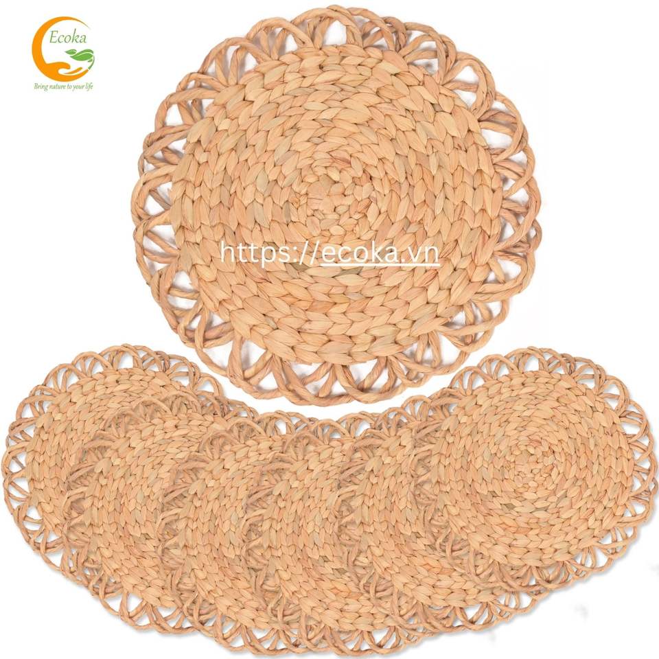 แผ่นรองจานไม้ไผ่ทรงกลมสไตล์โบโฮทันสมัยสานด้วยมือจากเวียดนาม ขนาดเส้นผ่านศูนย์กลาง 13.4 นิ้ว เป็นมิตรกับสิ่งแวดล้อม เหมาะสำหรับโต๊ะอาหาร ขายดี มีจำนวนสั่งซื้อขั้นต่ำน้อย