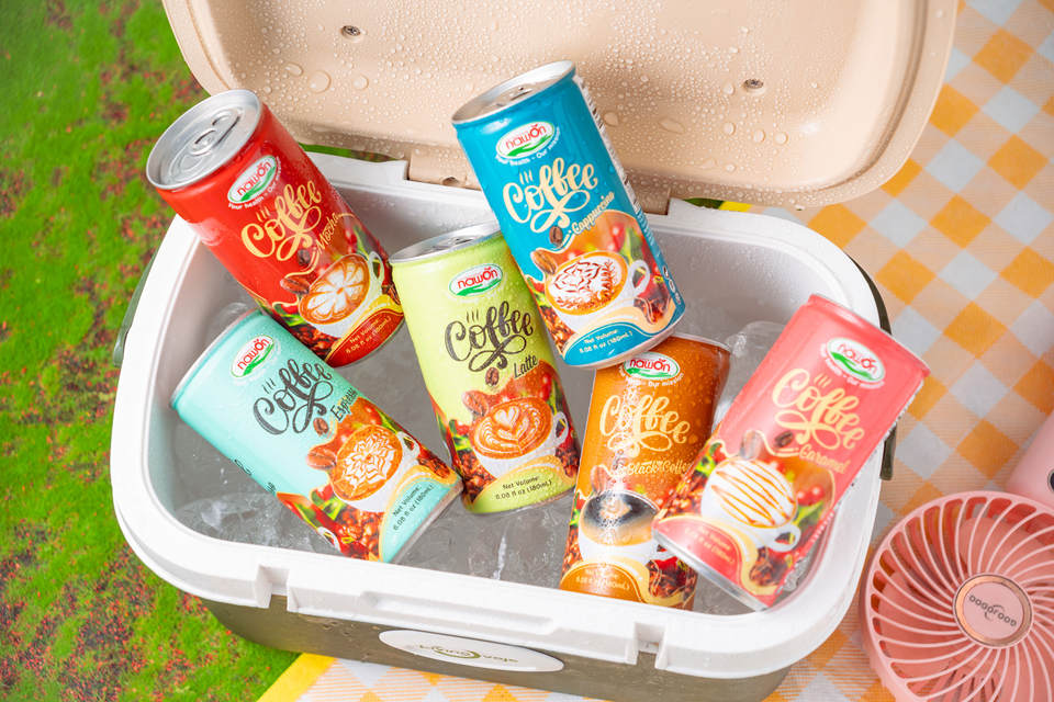 ผู้ผลิตที่ได้รับการรับรองมาตรฐาน ISO GMP ของเวียดนาม นาวอน เครื่องดื่มนมพร้อมดื่ม 180 มล. กาแฟดำ คาปูชิโน คาราเมล มอคค่า รับผลิตแบบ OEM ODM
