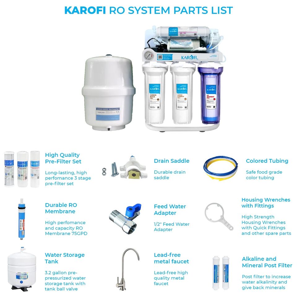 75GPD คาโรฟีเวียดนามระบบระบายน้ำ RO 7-STAGE ถัง4-5แกลลอน125 PSI ปั๊มบูสเตอร์ใหม่เมมเบรน220V ใช้ในบ้านดี