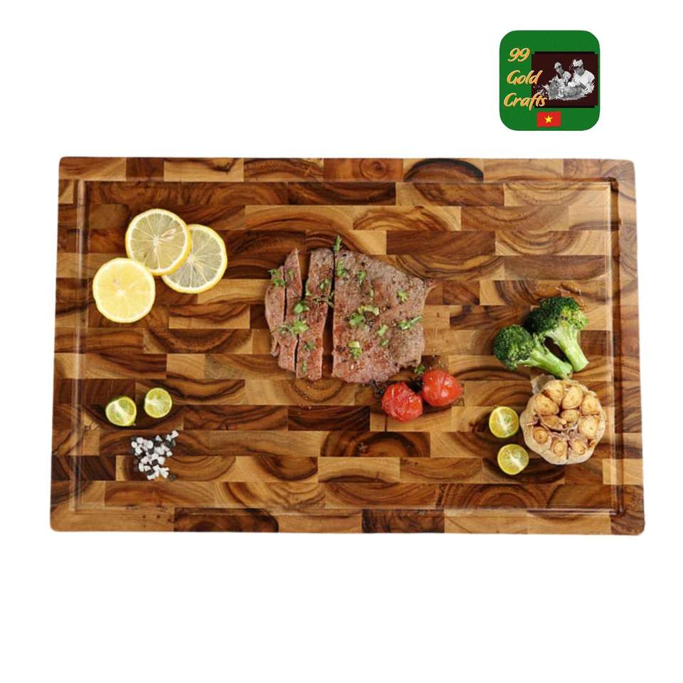 เขียงไม้สักทรงสี่เหลี่ยมขนาดใหญ่จากเวียดนาม แบบ End Grain สามารถปรับแต่งได้ด้วยเลเซอร์