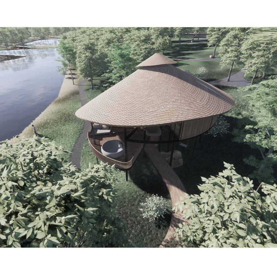 บ้านสำเร็จรูปเวียดนาม LCB03 บังกะโล 104 ตร.ม. คุณภาพสูง ดีไซน์ทันสมัย ผลิตจากไม้ไผ่อุตสาหกรรม บ้านวิลล่าใหม่ขนาด 40HC