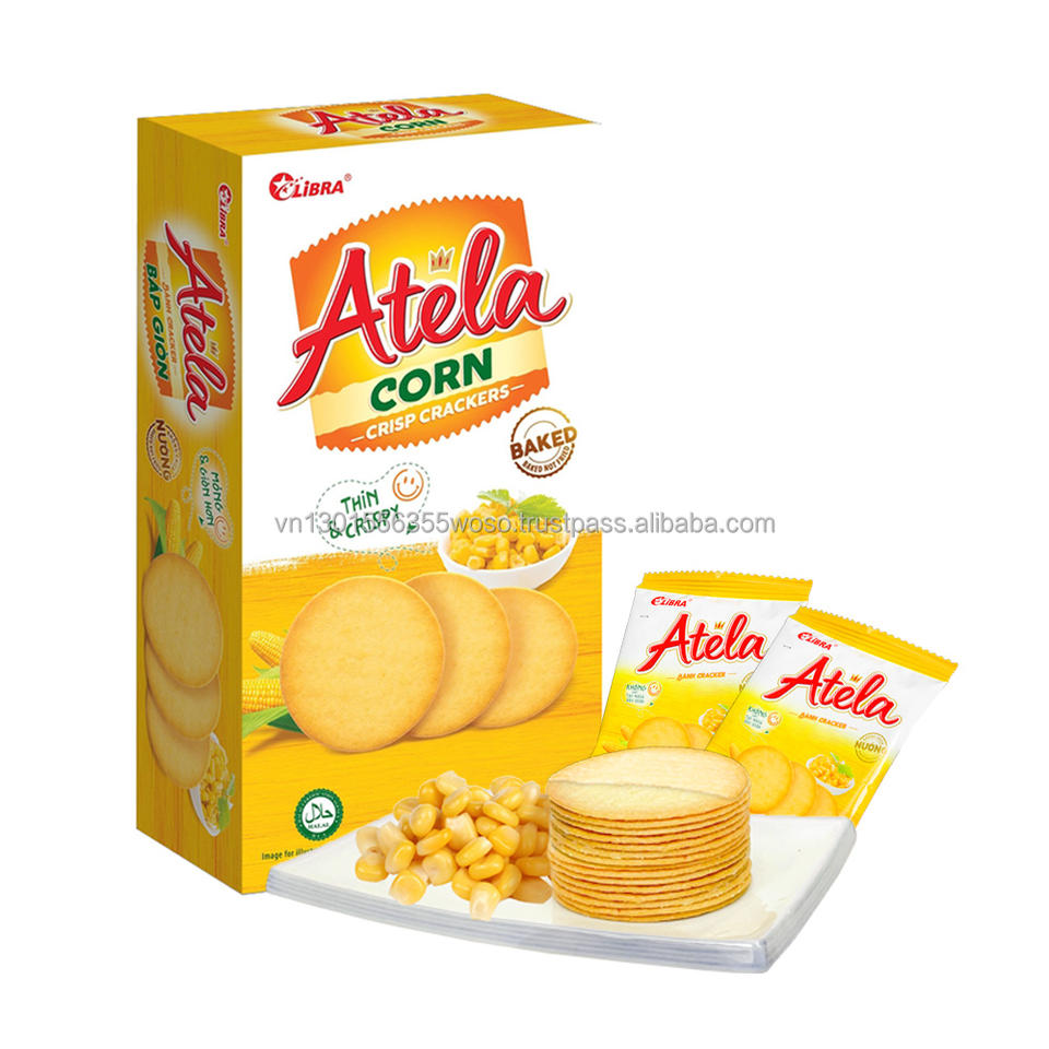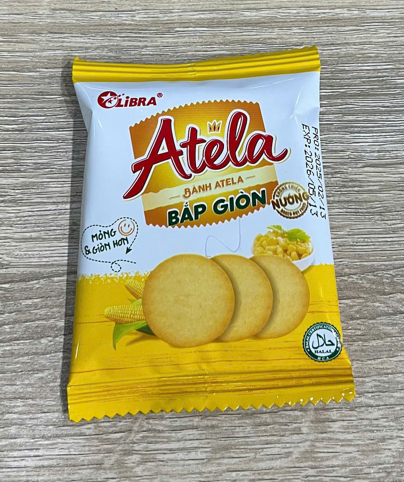 เวียดนาม ลิบรา อาเทล่า 150 กรัม บิสกิตข้าวโพดกรอบ ฮาลาล ได้รับมาตรฐาน ISO รสเค็ม ผลิตภัณฑ์ FMCG บรรจุภัณฑ์แบบซองและกล่อง