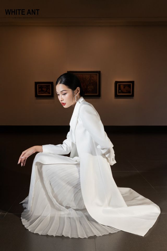 เสื้อโค้ทสตรียาวแบรนด์ท้องถิ่นของเวียดนามเสื้อโค้ทคอปกโอซันเสื้อโค้ทปลายแหลม79% ผ้าเรยอน17% ผ้าไนลอน4% ฉลากและแท็กแบบกำหนดเอง