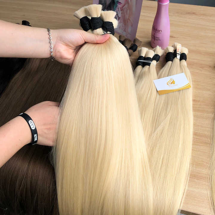ต่อผมแท้เวียดนาม 100% เส้นเดียวจากผู้บริจาคเดียว แบบ Remy ผมเวอร์จิ้นแบบ Double Drawn สีบลอนด์ตรงสลวยเป็นลอนคุณภาพสูง