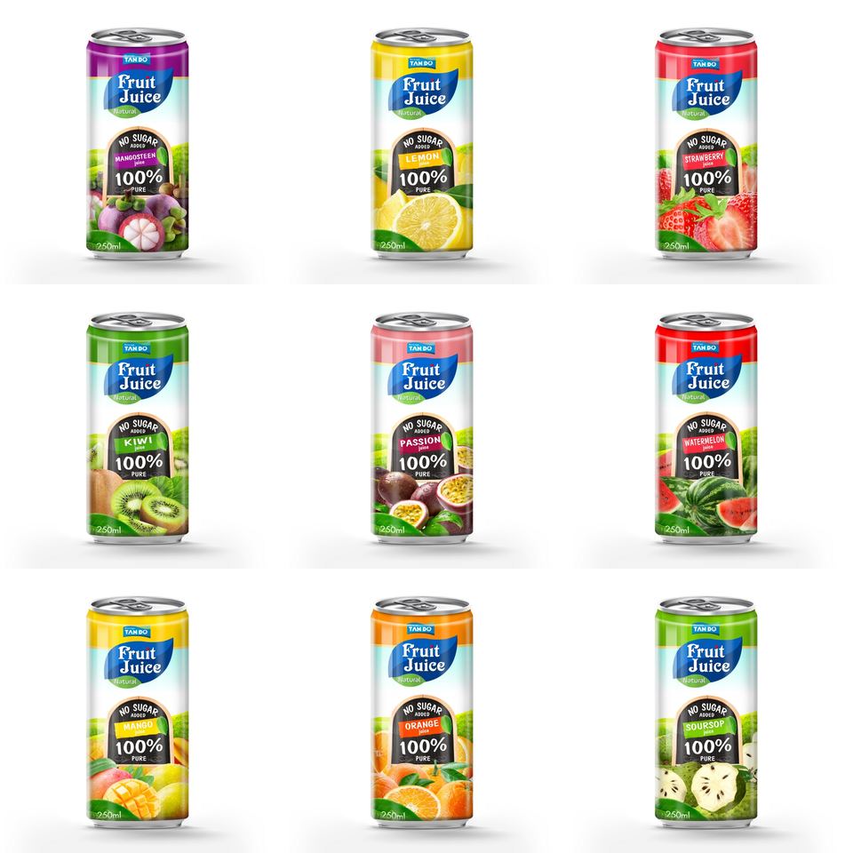 น้ำมะขามบรรจุกระป๋องอะลูมิเนียมทรงเพรียว 250 มล. ผลิตในเวียดนาม แบรนด์ส่วนตัว ได้รับการรับรองมาตรฐาน HACCP/ISO เครื่องดื่มปรุงแต่งรส