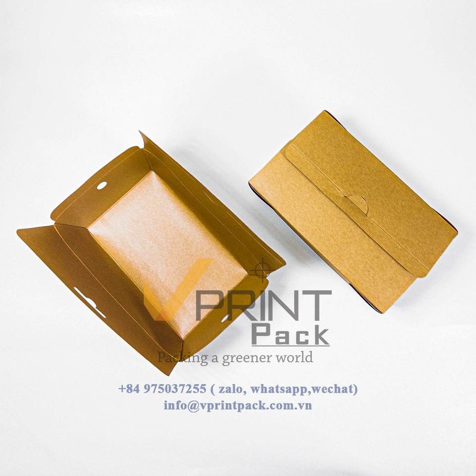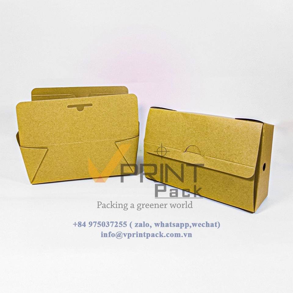กล่องกระดาษคราฟท์ย่อยสลายได้ ผลิตในเวียดนาม สำหรับใส่พิซซ่า โดนัท บะหมี่ ซูชิ และอื่นๆ เหมาะสำหรับบรรจุภัณฑ์สลัดและของขวัญ