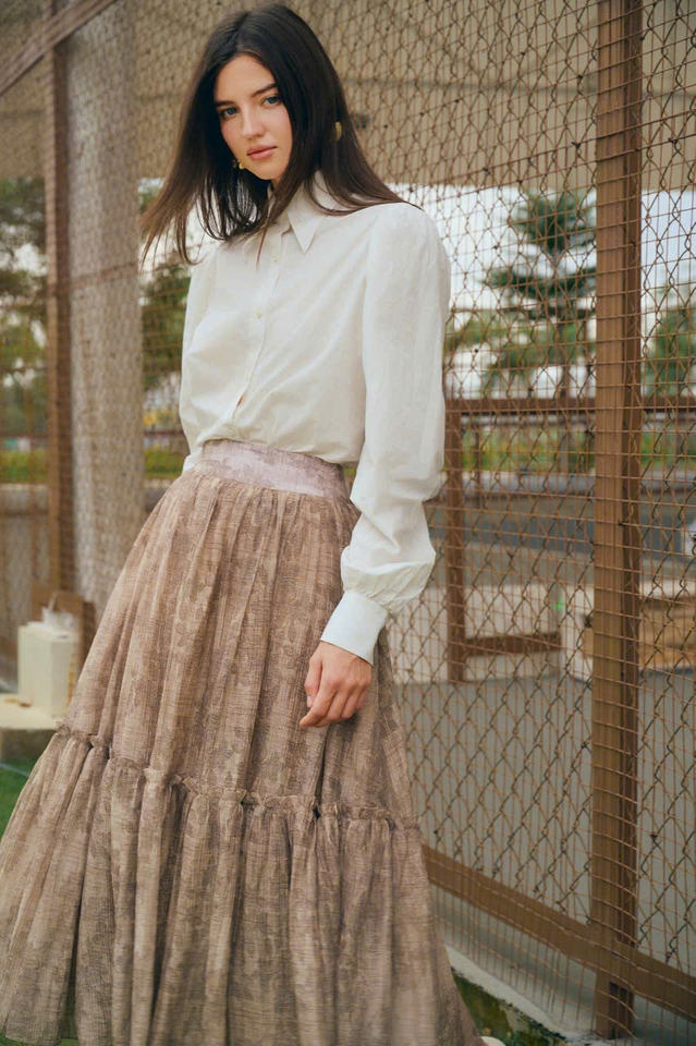 กระโปรงพลบค่ำสำหรับผู้หญิงกระโปรงทรงเสน่ห์แบบลำลองทำจากเวียดนามเสื้อผ้าสำหรับผู้หญิงมีบริการ ODM ผ้าไหมพิมพ์ลาย