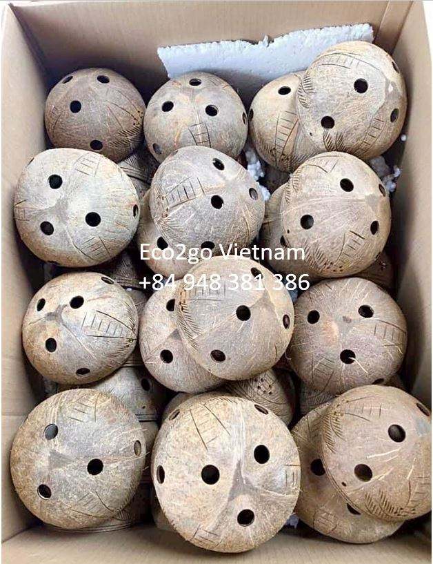 กระถางต้นไม้กะลามะพร้าวที่ผลิตในเวียดนามขนาดกลางถึงใหญ่สําหรับสวนหรือเรือนเพาะชําใช้ชามผู้ถือพืช