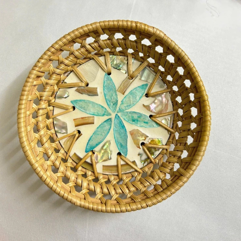 จานหวายทำจากมุกลายดอกไม้ที่สง่างามของตกแต่งบ้านการแสดงผลชา