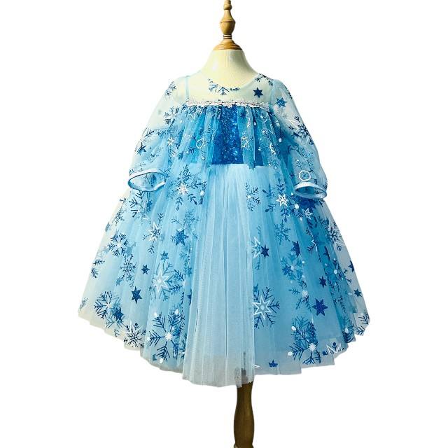 ชุดเดรสเจ้าหญิงเอลซ่าการ์ตูนสำหรับเด็กผู้หญิงชุดเดรสแขนยาวผลิตตามสั่งสำหรับฤดูใบไม้ผลิ-ฤดูหนาวฤดูใบไม้ร่วงจากเวียดนาม