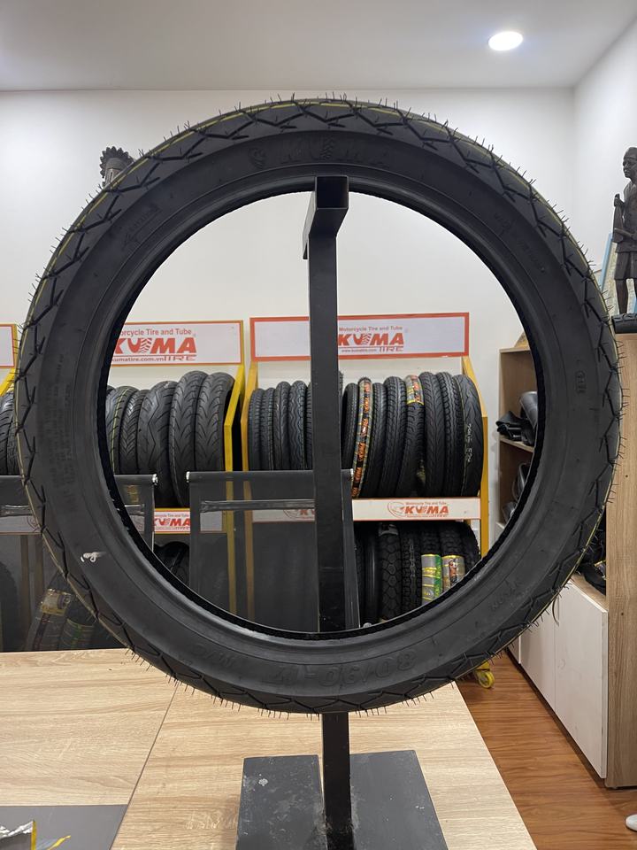 ยางรถจักรยานยนต์ KUMA K138 ผลิตในเวียดนาม ยางธรรมชาติ + ไนลอน 4PR/6PR/8PR 80/90-17 ระยะทาง 20000 กม. รับประกัน 12 เดือน สีดำ