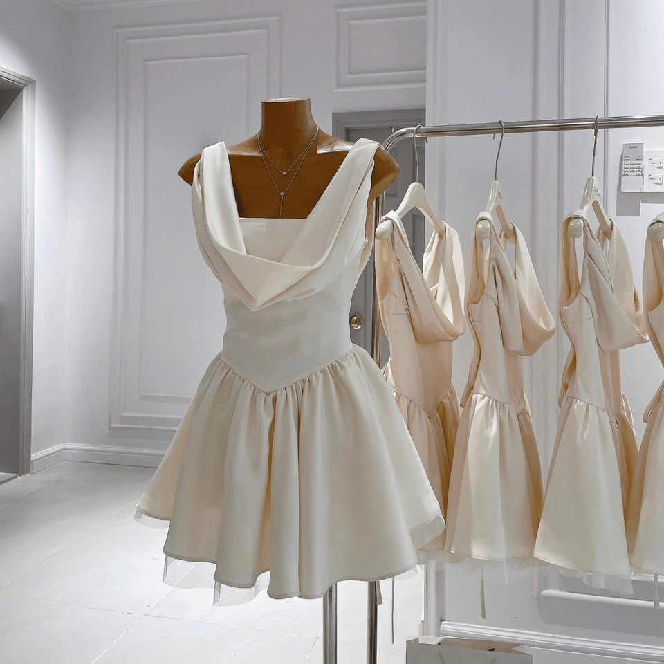 เวียดนามผลิตชุดมินิเดรสหรูหราสำหรับผู้หญิง คอวี แขนกุด เซ็กซี่ แต่งลูกไม้ ซับในผ้าไหม เอวธรรมชาติ ทรงเอไลน์ สำหรับงานกลางคืน