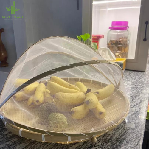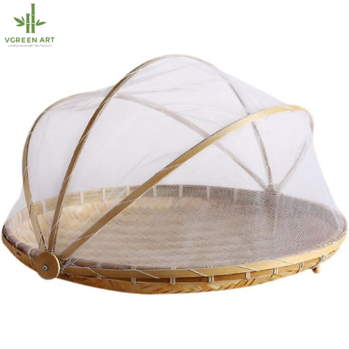 ฝาครอบจานทำจากไม้ไผ่ธรรมชาติเป็นมิตรกับสิ่งแวดล้อมฝาปิดอาหารพร้อมตะกร้าจัดเก็บสีสันสดใสทนทานและทันสมัย