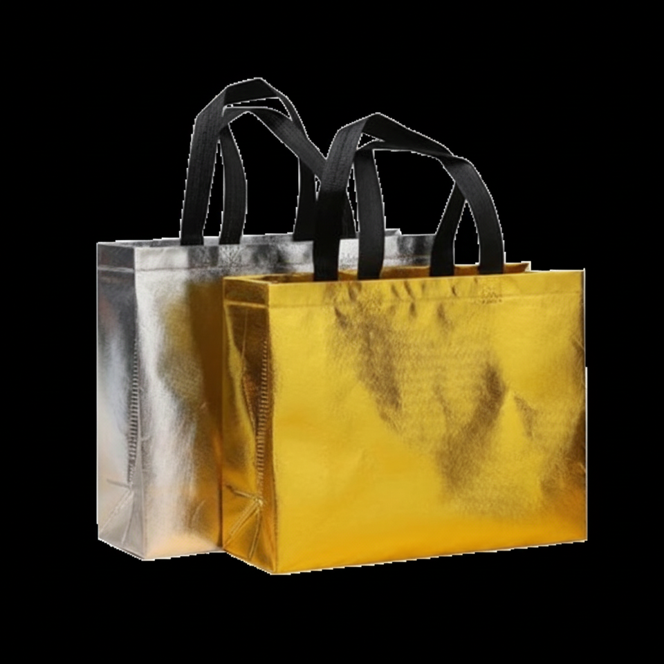 ผู้ผลิตเวียดนามขายส่งถุงช้อปปิ้งผ้าไม่ทอเคลือบเมทัลลิกสีเงิน/ทองพร้อมพิมพ์ลายตามสั่ง