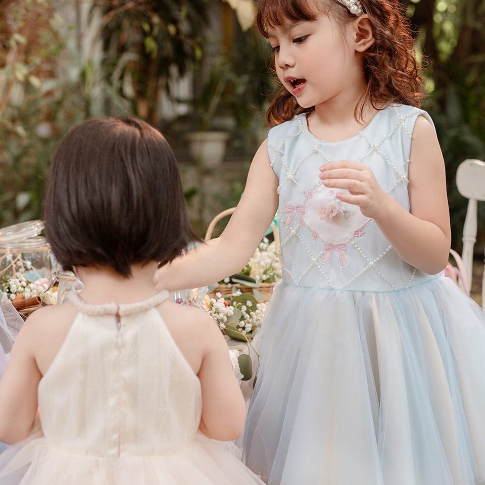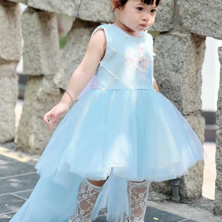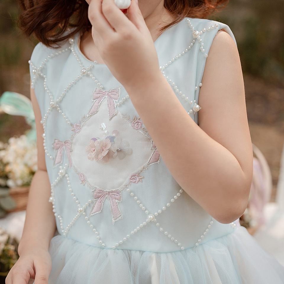 ชุดผ้าทูลบูติกสำหรับเด็กผู้หญิงเดรสผ้าบางหลายชั้นปักลายดอกไม้ประดับด้วยลูกปัดของเด็กผู้ผลิตในเวียดนาม