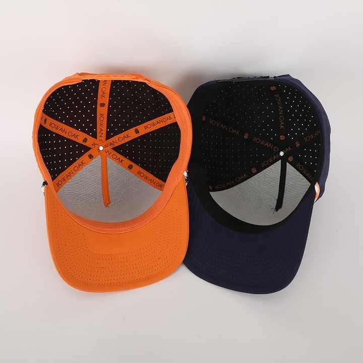 หมวกเบสบอลสำหรับผู้ชายหมวกกอล์ฟแบบสปอร์ต5แผงกันน้ำมีเชือกโลโก้ออกแบบได้ตามต้องการและมีรูตัดด้วยเลเซอร์